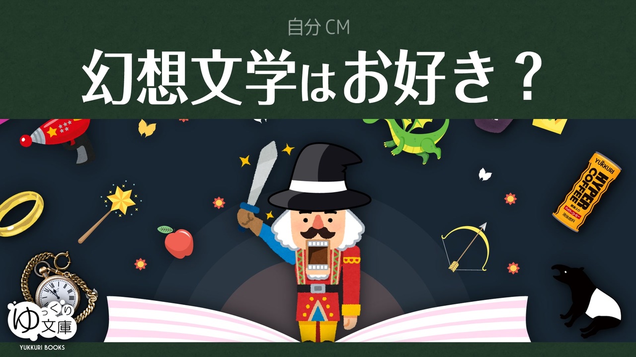 <span style="color: #ff0000;"><strong>あなたはきっと、幻想文学を好きになる──</strong></span><br>ファンタジーにかぎらず、あらゆる物語(フィクション)は、現実のなにかを置き換えている。直接言及しづらいから、物語で伝えようとしている。幻想は、毒にも薬にもなるけど、幻想のない現実なんてつまらない。<br><a href="https://www.nicovideo.jp/watch/sm45013729" class="watch">sm45013729</a> 30秒!私のCM投稿祭<br><br>●幻想文学<br><a href="https://www.nicovideo.jp/watch/sm22832725" class="watch">sm22832725</a> 中島敦「山月記」<br><a href="https://www.nicovideo.jp/watch/sm24931315" class="watch">sm24931315</a> ボーム「オズの魔法使い」<br><a href="https://www.nicovideo.jp/watch/sm27103362" class="watch">sm27103362</a>宮沢賢治「銀河鉄道の夜:カムパネルラ視点」<br><a href="https://www.nicovideo.jp/watch/sm42731885" class="watch">sm42731885</a>ブッツァーティ「七人の使者」<br><a href="https://www.nicovideo.jp/watch/sm41553797" class="watch">sm41553797</a>ホフマン「くるみ割り人形とねずみの王様」<br><br>●30秒!私のCM投稿祭<br><a href="https://www.nicovideo.jp/watch/sm45248811" class="watch">sm45248811</a> 物語はお好き?<br><a href="https://www.nicovideo.jp/watch/sm45264848" class="watch">sm45264848</a> 小泉八雲はお好き?<br><a href="https://www.nicovideo.jp/watch/sm45264862" class="watch">sm45264862</a> SFはお好き?<br><a href="https://www.nicovideo.jp/watch/sm45264899" class="watch">sm45264899</a> 昔話はお好き?<br><a href="https://www.nicovideo.jp/watch/sm45295860" class="watch">sm45295860</a> 菊池寛はお好き?<br><a href="https://www.nicovideo.jp/watch/sm45295913" class="watch">sm45295913</a> 犯人はお好き?<br><a href="https://www.nicovideo.jp/watch/sm45318006" class="watch">sm45318006</a> <span style="color: #ff00ff;"><strong>幻想文学はお好き?</strong></span><br><a href="https://www.nicovideo.jp/watch/sm45318035" class="watch">sm45318035</a> きめぇ丸はお好き?<br><a href="https://www.nicovideo.jp/watch/sm45352851" class="watch">sm45352851</a> 解説パートはお好き?<br><a href="https://www.nicovideo.jp/watch/sm45355020" class="watch">sm45355020</a> 文庫ラジオはお好き?<br><br><strong>●ゆっくり文庫について</strong><br>ほぼ全部:<a href="https://www.nicovideo.jp/mylist/74874627" target="_blank" rel="noopener">mylist/74874627</a><br>近況:<a href="https://twitter.com/trynext" target="_blank" rel="noopener nofollow">https://twitter.com/trynext</a><br>ほしいもの:<a href="https://t.co/YxftFUO7zD" target="_blank" rel="noopener nofollow">https://t.co/YxftFUO7zD</a><br>文庫ラジオ:co5782398<br>---