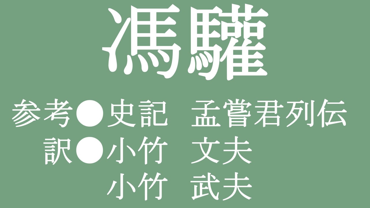 孟嘗君列伝第2弾<br>史記と戦国策で内容が違うみたいですが一応この動画は史記準拠になっております<br><br>使用ソフト:AquesTalk1(ゆっくり)<br><br><a href="https://www.nicovideo.jp/watch/sm45164885" class="watch">sm45164885</a>←前 次→<a href="https://www.nicovideo.jp/watch/sm45496718" class="watch">sm45496718</a> ゆっくり昔ばなし→<a href="https://www.nicovideo.jp/mylist/74203390" target="_blank" rel="noopener">mylist/74203390</a><br>何か質問等ございましたらこちらへ⇒<a href="https://twitter.com/musiitakamaboko" target="_blank" rel="noopener nofollow">https://twitter.com/musiitakamaboko</a><br>雪ちゃん(後輩)シリーズ→<a href="https://www.nicovideo.jp/mylist/75323148" target="_blank" rel="noopener">mylist/75323148</a> ボイボ劇場→<a href="https://www.nicovideo.jp/mylist/75893506" target="_blank" rel="noopener">mylist/75893506</a><br>単発ゲーム実況→<a href="https://www.nicovideo.jp/mylist/76510227" target="_blank" rel="noopener">mylist/76510227</a> 騒音3人組実況→<a href="https://www.nicovideo.jp/mylist/76131940" target="_blank" rel="noopener">mylist/76131940</a><br>ネタ動画→<a href="https://www.nicovideo.jp/mylist/74510113" target="_blank" rel="noopener">mylist/74510113</a> 苦行ゲーずんだもん→<a href="https://www.nicovideo.jp/mylist/74914465" target="_blank" rel="noopener">mylist/74914465</a><br>タルコフ奮闘記→<a href="https://www.nicovideo.jp/mylist/75100736" target="_blank" rel="noopener">mylist/75100736</a> マイクラゆっくり実況→<a href="https://www.nicovideo.jp/mylist/74492386" target="_blank" rel="noopener">mylist/74492386</a>