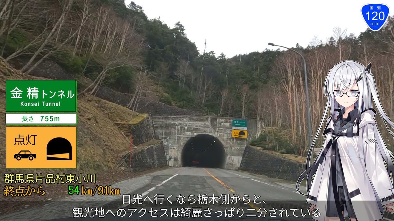 国道を走破しながらアリアルさんが地理や交通を解説してくれるシリーズ<br><br>25本目。群馬県沼田市と栃木県日光市を結ぶ国道120号(全長91km)を走ります。Part1は沼田市から金精トンネル(群馬-栃木県境)までの54km<br><br>国道17号、145号、120号の分岐点、沼田市の下川田町交差点からスタート。終点付近は3国道の重複区間ですが、利根川を渡ってすぐに国道291号が離脱します。急坂を登って沼田市街地へ。<br><br>沼田市街地では何度か右左折を挟み、途中から群馬・福島県道1号も重複してきます。沼田ICの前後のみ片側2車線となります。<br><br>椎坂トンネルで旧道の峠をショートカット。観光地として有名な吹割の滝を過ぎて、片品村に入ります。片品村の中心部にて国道401号、県道1号が尾瀬方面へ分かれます。<br><br>その後はスノーシェッドとカーブの連続する山道を走り、丸沼高原スキー場を経て、群馬、栃木県境の金精トンネルに至ります。金精峠の標高は1840mと、全国の国道の峠の中で3位の高さです<br><br>YouTube版→<a href="https://youtu.be/EMGsxuf8dpU" target="_blank" rel="noopener nofollow">https://youtu.be/EMGsxuf8dpU</a><br><br>■お借りした画像や音楽など<br>・CoeFont - Voiced by <a href="https://CoeFont.CLOUD" target="_blank" rel="noopener nofollow">https://CoeFont.CLOUD</a><br>・立ち絵:紀常式_アリアル立ち絵 - <a href="https://seiga.nicovideo.jp/seiga/im10845488" target="_blank" rel="noopener nofollow">https://seiga.nicovideo.jp/seiga/im10845488</a><br>・城の旅への城写見 沼田城 - <a href="https://castle.sunnyday.jp/castle/numata.html" target="_blank" rel="noopener nofollow">https://castle.sunnyday.jp/castle/numata.html</a><br>・川場RCプラザの紹介 - <a href="https://www.kimihiko-yano.jp/RadioCon/Other/Circuit/kawaba/kawaba.htm" target="_blank" rel="noopener nofollow">https://www.kimihiko-yano.jp/RadioCon/Other/Circuit/kawaba/kawaba.htm</a><br>・幻の巨大ダム計画「関東の琵琶湖」 - <a href="https://traveler-cipher.hatenablog.com/entry/2021/05/04/115215" target="_blank" rel="noopener nofollow">https://traveler-cipher.hatenablog.com/entry/2021/05/04/115215</a><br>♪旅の始まり - ゆうり 様<br>♪Drifting Friday - MFP 様<br>♪NotoStone Castel - のる 様