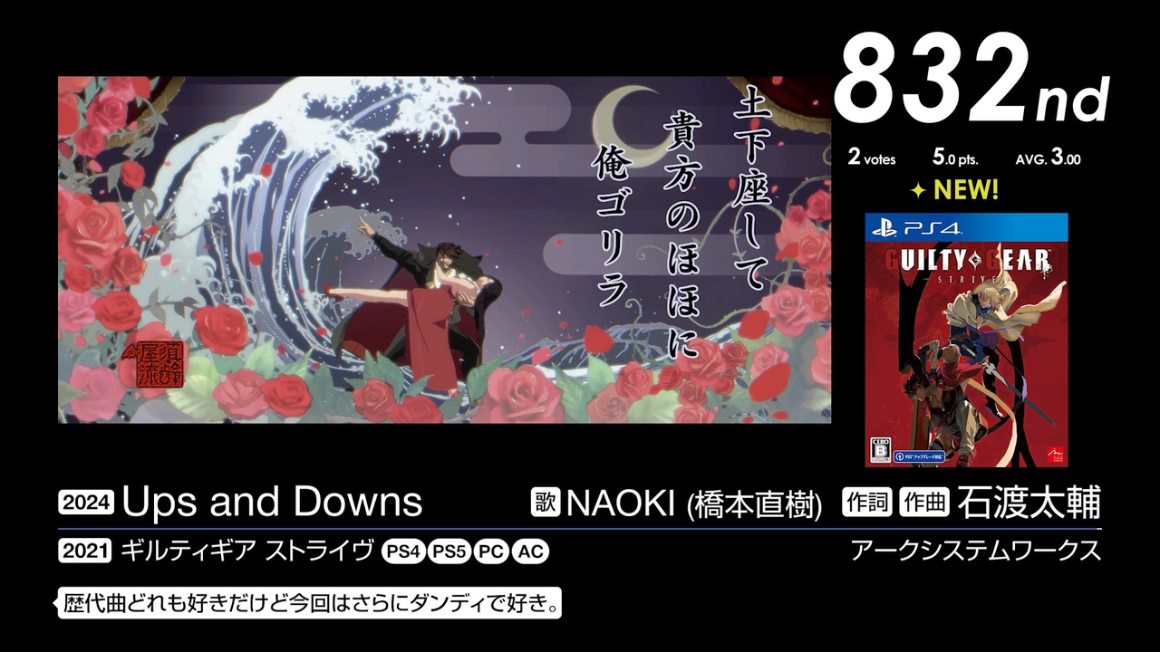 836位~820位の25曲を収録。<br><br>2024年6月11日~2024年8月1日で行われた「第17回みんなで決めるゲーム音楽ベスト100」の投票結果動画です。集計人≠動画制作者<br>マグロ、ご期待ください<br><br><a href="https://www.nicovideo.jp/watch/sm45295646" class="watch">sm45295646</a>←前 次→<a href="https://www.nicovideo.jp/watch/sm45350122" class="watch">sm45350122</a><br><a href="https://www.nicovideo.jp/mylist/78315745" target="_blank" rel="noopener">mylist/78315745</a> <a href="https://www.nicovideo.jp/series/523562" target="_blank" rel="noopener">series/523562</a><br><br>836位 <a href="#" class="seekTime" data-seekTime="0:40" onclick="seekNicoPlayer('#0:40'); return false;">#0:40</a>, <a href="#" class="seekTime" data-seekTime="4:24" onclick="seekNicoPlayer('#4:24'); return false;">#4:24</a>, <a href="#" class="seekTime" data-seekTime="6:39" onclick="seekNicoPlayer('#6:39'); return false;">#6:39</a>, <a href="#" class="seekTime" data-seekTime="8:42" onclick="seekNicoPlayer('#8:42'); return false;">#8:42</a>, <a href="#" class="seekTime" data-seekTime="12:36" onclick="seekNicoPlayer('#12:36'); return false;">#12:36</a>, <a href="#" class="seekTime" data-seekTime="14:29" onclick="seekNicoPlayer('#14:29'); return false;">#14:29</a>, <a href="#" class="seekTime" data-seekTime="16:41" onclick="seekNicoPlayer('#16:41'); return false;">#16:41</a>, <a href="#" class="seekTime" data-seekTime="19:17" onclick="seekNicoPlayer('#19:17'); return false;">#19:17</a>, <a href="#" class="seekTime" data-seekTime="23:17" onclick="seekNicoPlayer('#23:17'); return false;">#23:17</a> / 832位 <a href="#" class="seekTime" data-seekTime="28:27" onclick="seekNicoPlayer('#28:27'); return false;">#28:27</a>, <a href="#" class="seekTime" data-seekTime="31:55" onclick="seekNicoPlayer('#31:55'); return false;">#31:55</a>, <a href="#" class="seekTime" data-seekTime="35:56" onclick="seekNicoPlayer('#35:56'); return false;">#35:56</a>, <a href="#" class="seekTime" data-seekTime="39:47" onclick="seekNicoPlayer('#39:47'); return false;">#39:47</a> / 820位 <a href="#" class="seekTime" data-seekTime="43:18" onclick="seekNicoPlayer('#43:18'); return false;">#43:18</a>, <a href="#" class="seekTime" data-seekTime="45:28" onclick="seekNicoPlayer('#45:28'); return false;">#45:28</a>, <a href="#" class="seekTime" data-seekTime="47:31" onclick="seekNicoPlayer('#47:31'); return false;">#47:31</a>, <a href="#" class="seekTime" data-seekTime="50:54" onclick="seekNicoPlayer('#50:54'); return false;">#50:54</a>, <a href="#" class="seekTime" data-seekTime="53:07" onclick="seekNicoPlayer('#53:07'); return false;">#53:07</a>, <a href="#" class="seekTime" data-seekTime="55:12" onclick="seekNicoPlayer('#55:12'); return false;">#55:12</a>, <a href="#" class="seekTime" data-seekTime="56:34" onclick="seekNicoPlayer('#56:34'); return false;">#56:34</a>, <a href="#" class="seekTime" data-seekTime="59:31" onclick="seekNicoPlayer('#59:31'); return false;">#59:31</a>, <a href="#" class="seekTime" data-seekTime="62:39" onclick="seekNicoPlayer('#62:39'); return false;">#62:39</a>, <a href="#" class="seekTime" data-seekTime="69:02" onclick="seekNicoPlayer('#69:02'); return false;">#69:02</a>, <a href="#" class="seekTime" data-seekTime="72:37" onclick="seekNicoPlayer('#72:37'); return false;">#72:37</a>, <a href="#" class="seekTime" data-seekTime="78:25" onclick="seekNicoPlayer('#78:25'); return false;">#78:25</a><br><br>----------<br><br>スクリーンショット募集中!詳細はこちら↓<br><a href="https://gamemusic17.vercel.app/" target="_blank" rel="noopener nofollow">https://gamemusic17.vercel.app/</a><br><br>結果詳細↓<br><a href="https://w.atwiki.jp/gamemusicbest100/pages/10538.html" target="_blank" rel="noopener nofollow">https://w.atwiki.jp/gamemusicbest100/pages/10538.html</a><br /><br>----------<br><br>第2回みんなで決める和風曲ランキング 2/28まで投票受付中!<br><a href="https://jbbs.shitaraba.net/bbs/read.cgi/music/25545/1764514793/" target="_blank" rel="noopener nofollow">https://jbbs.shitaraba.net/bbs/read.cgi/music/25545/1764514793/</a><br><br>みんなで決める2025年の新曲ゲーム音楽ランキング 3/31まで投票受付中!<br><a href="https://jbbs.shitaraba.net/bbs/read.cgi/music/25545/1769870472/" target="_blank" rel="noopener nofollow">https://jbbs.shitaraba.net/bbs/read.cgi/music/25545/1769870472/</a>