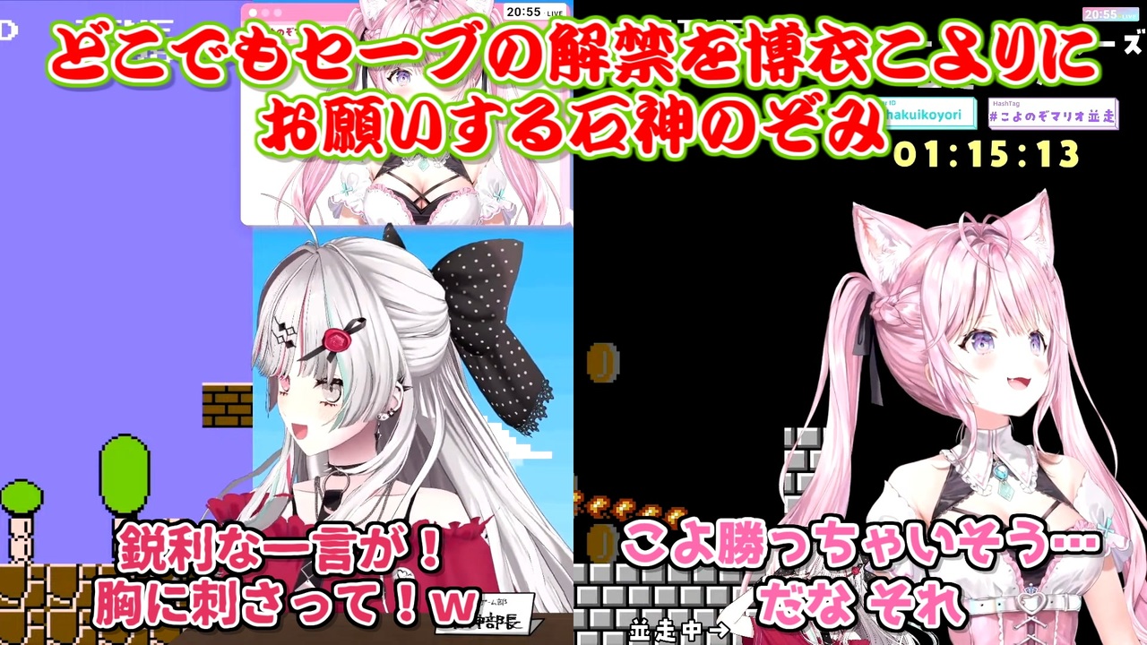 石神お前みっとも…誇らしいよ<br><br>本家参考動画<br>・石神のぞみ<br>【初代マリオ並走バトル】石神視点!博衣こよりちゃんとバトル!?にじホロマリオヘタ勢対決#こよのぞマリオ並走【にじさんじ所属/石神のぞみ】<br><a href="https://youtu.be/UCW66NuBEgQ" target="_blank" rel="noopener nofollow">https://youtu.be/UCW66NuBEgQ</a><br>・博衣こより<br>【初代マリオ並走バトル】へたっぴマリオ仲間!?石神のぞみちゃんとマリオ並走バトル!!! #こよのぞマリオ並走 【博衣こより視点/ホロライブ】<br><a href="https://youtu.be/sHBXJI4qfVE" target="_blank" rel="noopener nofollow">https://youtu.be/sHBXJI4qfVE</a><br><br>参考元チャンネル&X(Twitter)<br>・石神のぞみ<br><a href="https://www.youtube.com/@IshigamiNozomi" target="_blank" rel="noopener nofollow">https://www.youtube.com/@IshigamiNozomi</a><br><a href="https://twitter.com/I_Nozomi_" target="_blank" rel="noopener nofollow">https://twitter.com/I_Nozomi_</a><br>・博衣こより<br><a href="https://www.youtube.com/@HakuiKoyori" target="_blank" rel="noopener nofollow">https://www.youtube.com/@HakuiKoyori</a><br><a href="https://twitter.com/hakuikoyori" target="_blank" rel="noopener nofollow">https://twitter.com/hakuikoyori</a><br><br>ニコニコのダイコンマンリスト<br>「バーチャルYouTuberシリーズ1~5」↓<br>1 <a href="https://www.nicovideo.jp/mylist/62551838" target="_blank" rel="noopener">mylist/62551838</a><br>2 <a href="https://www.nicovideo.jp/mylist/67858437" target="_blank" rel="noopener">mylist/67858437</a><br>3 <a href="https://www.nicovideo.jp/mylist/71340675" target="_blank" rel="noopener">mylist/71340675</a><br>4 <a href="https://www.nicovideo.jp/mylist/73995264" target="_blank" rel="noopener">mylist/73995264</a><br>5 <a href="https://www.nicovideo.jp/mylist/76618161" target="_blank" rel="noopener">mylist/76618161</a><br><br>ダイコンマンのTwitter<br><a href="https://twitter.com/Daikon_Man_V" target="_blank" rel="noopener nofollow">https://twitter.com/Daikon_Man_V</a>