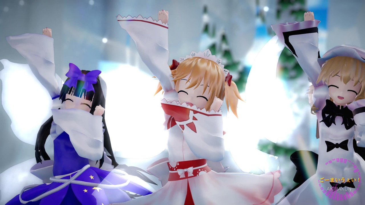 3人に踊ってもらいました。この作品は「東方project」の2次創作です。<br>現在、作成リクエストは受け付けていません。<br><br><br>【楽曲】:「ごーまいうぇい!」:キノシタ様 <a href="https://www.nicovideo.jp/watch/sm37239551" class="watch">sm37239551</a><br><br>【振付】:足太ぺんた様 <a href="https://www.nicovideo.jp/watch/sm38244663" class="watch">sm38244663</a><br><br>【モーション】:根性様 <a href="https://www.nicovideo.jp/watch/sm40356559" class="watch">sm40356559</a><br><br>【カメラ】:あるらうね様 <a href="https://seiga.nicovideo.jp/seiga/im10897750" target="_blank" rel="noopener">im10897750</a><br><br><br>■スカイドーム<br>手描きスカイドーム青:Ai 様 <a href="https://seiga.nicovideo.jp/seiga/im11194131" target="_blank" rel="noopener">im11194131</a><br><br>■ステージ<br>小さな森ステージ:一護牛乳様 <a href="https://seiga.nicovideo.jp/seiga/im10721190" target="_blank" rel="noopener">im10721190</a><br>白い廃墟:一護牛乳様 <a href="https://seiga.nicovideo.jp/seiga/im10988233" target="_blank" rel="noopener">im10988233</a><br>蔦と硝子の空:一護牛乳様 <a href="https://seiga.nicovideo.jp/seiga/im11235407" target="_blank" rel="noopener">im11235407</a><br>白花畑_昼:Ai 様 <a href="https://seiga.nicovideo.jp/seiga/im11194136" target="_blank" rel="noopener">im11194136</a><br><br>■モデル<br>サニーミルク:雪萱様 <a href="https://www.nicovideo.jp/watch/sm29257149" class="watch">sm29257149</a><br>スターサファイア:雪萱様 <a href="https://www.nicovideo.jp/watch/sm29257210" class="watch">sm29257210</a><br>ルナチャイルド:雪萱様 <a href="https://www.nicovideo.jp/watch/sm29266434" class="watch">sm29266434</a><br><br>■エフェクト<br>Ray-mmd-1.5.2:Rui様<br>初心者マテリアル:さらしな様<br>肌マテリアル:MARUSU様<br>AutoLuminous4:そぼろ様<br>流体水面エフェクト:ビームマンP様<br>空中に漂う埃:化身バレッタ様<br>ikBokeh_v020a:ikeno様<br>ScreenTex改変_動く入射光:のりしお様<br><br><br>MikuMikuDance:樋口優様<br>MMEffect :舞力介入P様<br>PMDE、PmxE:極北P様<br>AviUtl :KENくん様<br>・Aviutl + x264guiExでエンコード:rigaya様<br>Ut Video Codec Suite:ゆーむP様<br>上海アリス幻楽団・東方project(ZUN様)<br><br><br>mylist ③<a href="https://www.nicovideo.jp/mylist/75586824" target="_blank" rel="noopener">mylist/75586824</a> ② <a href="https://www.nicovideo.jp/mylist/72970530" target="_blank" rel="noopener">mylist/72970530</a> ① <a href="https://www.nicovideo.jp/mylist/63690967" target="_blank" rel="noopener">mylist/63690967</a> 旧 <a href="https://www.nicovideo.jp/mylist/61238351" target="_blank" rel="noopener">mylist/61238351</a><br><br> ※動画の転載は禁止です。<br>Attention,Unauthorized reproduction prohibited!!
