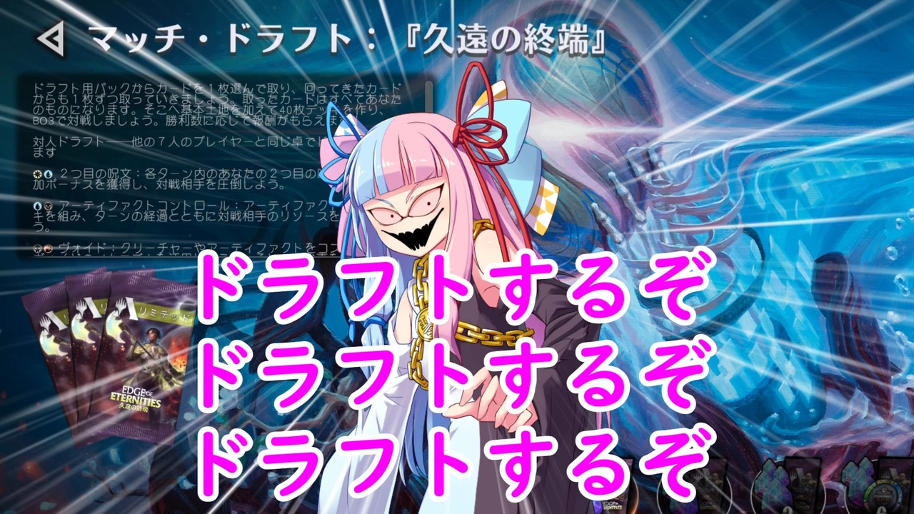 コメ返し(201話)<br><br>Q.パックつんよ。白濃厚すぎて下に白生まれそうなのがつらあじね<br>A.そこで白に行って他家を《意志の力》でどかすのがドラフトの醍醐あじよ<br><br>Q.「なんだか(シリーズ的に)当たり前のことのような気がしますな」「いやいや 大事な事ですぞ」<br>A.「レアピばかりしていると...やがてレア満載デッキになりましょう!!!」「うむ…」<br><br>Q.ファクトキャストギミックに溢れた環境なんやろうなぁ・・・<br>A.おっそうだな(ギルドを見ながら)<br><br>Q.グッと召喚しただけで相手が爆散した<br>A.本当にするのは草<br><br>Q.ウロボロイド大事デッキ<br>A.ウロボロイドが大事じゃないリミテのデッキってなんだよ<br><br>コメ返し(202話)<br><br>Q.これ即レアピするのか…<br> これリミテだとあんま効果ないよ<br>A.動画の方向性がね…<br><br>Q.ここで単色デッキ狙うのがフレイザードの強さよ<br>A.むしろこれで単色狙わん奴おるん?<br><br>Q.何味派かで対立してそう<br>A.薄味、濃目、プレーンから選べるぞ。 ---タヌーク<br><br>Q.ウギンのお手手で作ってるから雑なんでしょ<br>A.面晶体作ったのはナヒリやぞ<br><br>Q.そのレベルで能力盛れば《氷耕しの探検家》と組んでカジュアルデッキ作られる程度にはなりそう、これで除去の色は緑のもんだぜ!<br>A.じゃあ探検家に討伐打ちますね<br><br>Q.ぶっちゃけこんだけ除去取れてりゃ流石に強いよ、大体卓にもう一人か二人居て流れクッソ渋くて死ぬので黒単で絞りまくった成果じゃないかなぁ…<br>A.カード流した奴と試合で当たる奴はたいてい別の奴なので理不尽ではある...<br><br>Q.2敗してて危なかったじゃないか!<br> これでも2敗してるのか…<br>A.BO1で常時無敗は無理無理無理!<br><br><br><br>前回の広告者様は書き切れないので割愛させて頂きます<br><br>でも皆さんありがとうございます!<br><br>ワディ兄貴からギフトを大量に頂きました!ありがとうございます!!<br><br>前><a href="https://www.nicovideo.jp/watch/sm45304400" class="watch">sm45304400</a> 次><a href="https://www.nicovideo.jp/watch/sm45343624" class="watch">sm45343624</a><br><br>ツイ><a href="https://twitter.com/tNK3ob36cqRwyJE" target="_blank" rel="noopener nofollow">https://twitter.com/tNK3ob36cqRwyJE</a><br>MTGマイリス><a href="https://www.nicovideo.jp/mylist/40093606" target="_blank" rel="noopener">mylist/40093606</a><br><br>凍結燃焼の奇MTGはファンコンテンツ・ポリシーに沿った非公式のファンコンテンツです。ウィザーズ社の認可/許諾は得ていません。題材の一部に、ウィザーズ・オブ・ザ・コースト社の財産を含んでいます。<br>©Wizards of the Coast LLC.<br>
