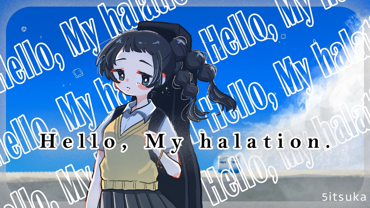 ボカロPの5itsukaです。33作目です。<br><br>5itsuka:【@5itsukaOfficial】( <a href="https://twitter.com/5itsukaOfficial" target="_blank" rel="noopener nofollow">https://twitter.com/5itsukaOfficial</a> / 5itsuka.official@gmail.com ) <br>Vocal:重音テト <br>Music:DAICHI【@D_5itsuka】( <a href="https://x.com/D_5itsuka" target="_blank" rel="noopener nofollow">https://x.com/D_5itsuka</a> ) <br>Words:GIN【@G_5itsuka】( <a href="https://x.com/G_5itsuka" target="_blank" rel="noopener nofollow">https://x.com/G_5itsuka</a> )<br>Illustration:咲雨◾︎わらう【@smile2_merry】<br>Movie:nagi<br>Inst <br><br>一瞬がそして永遠になって紡がれていくなら<br>この気持ちはどこへ行くのかな<br><br>早すぎた日々の面影が未だこの胸を締め付けてる<br>積み上がるあの雲の向こうに青春の輝きを仰いだ<br><br>どれだけ深く潜ろうとも心の全てを解き明かせない<br>意味もなく見上げた空には優雅な姿で飛ぶ鳥<br><br>この気怠さはきっと一生を懸けてでも<br>拭えぬ呪いだろう もう随分慣れたけど<br>滴る汗の跡 触れた風 <br>波間に揺れる陽がこの傷をつつく<br><br>きっと僕ら同じように生きる事は難しいんだね<br>それぞれが描く明日をその瞳が捉える為に<br>放たれた光とランデヴー<br>一瞬がそして永遠になって紡がれていくなら<br>この気持ちも無駄じゃないのかな<br>Hello, my halation…<br><br>時より切なくもなるけど時代の流れは止まってくれない<br>すり減らす心の代償に僕らは何を手に入れられた?<br><br>季節毎に色を変える木々のように<br>容易く移り行く人の想いとは<br>見えないものを探し続ける<br>なんて儚くも美しいもの<br><br>幼くて醜くて惨めな恋を追いかけた一夏のことが<br>突然の夕立にさらされても体温を保って<br>今もそばに感じてしまうよ 大切で…<br><br>きっと僕ら同じように生きる事は難しいんだね<br>それぞれが描く明日をその瞳に捉える為に<br>放たれた光とランデヴー<br>一瞬がそして永遠になって紡がれていくなら<br>この気持ちも愛せるのかな<br><br>毎日を生き抜くことにただ必死になっているだけで<br>蔑ろになっていく想いも数えきれないほど<br>真剣なその眼差しをそっと見つめるだけで<br>僕も少し強くなれた気がしたんだ<br>限りある時間の中で 一歩ずつ死に向かう中で<br>今何ができるのか感じるままに生きていくよ<br>夏が終わってしまうようなこの寂しさを抱き抱えて…<br>Hello, My halation…