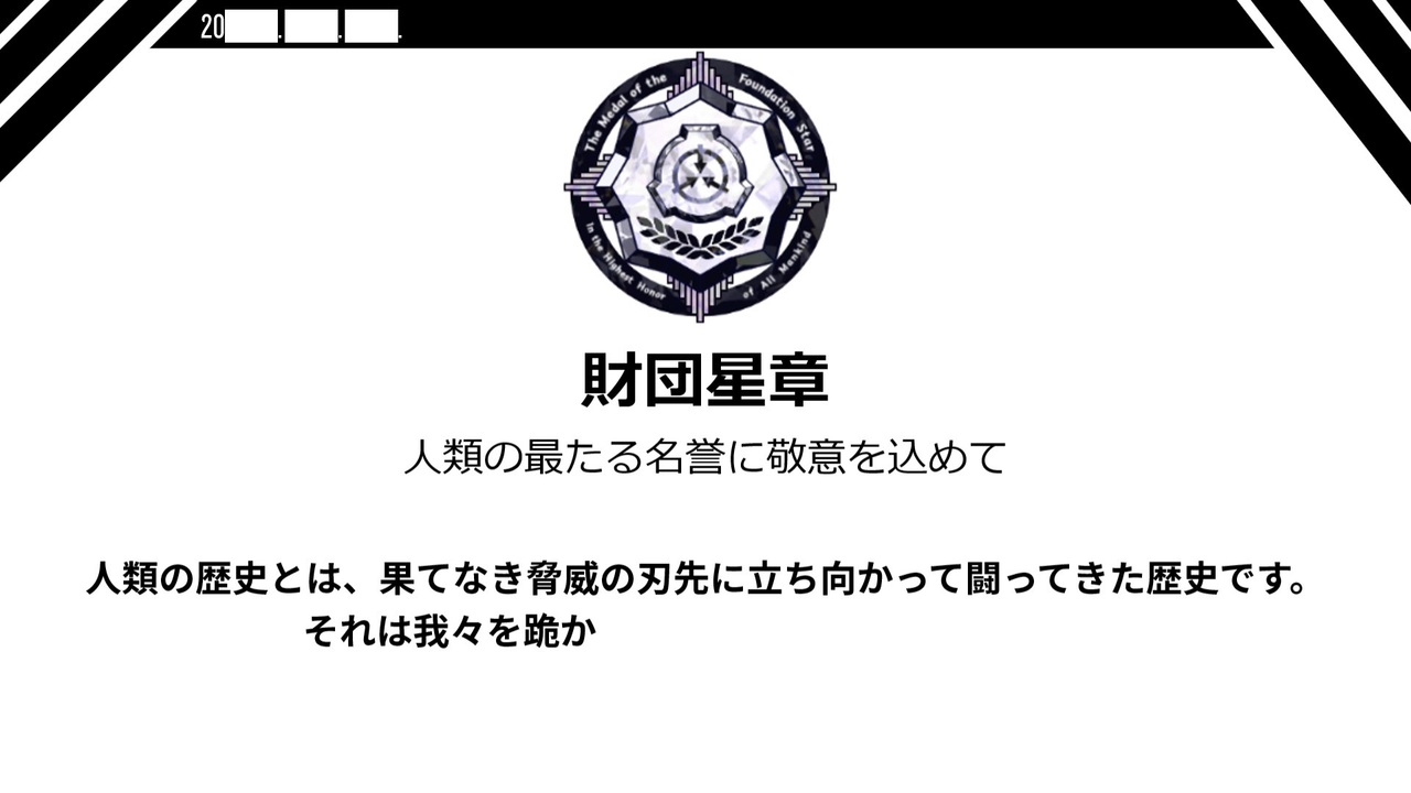 SCP-1000-KOコンテスト<br><a href="http://scp-jp.wikidot.com/scp1000kocontesthub" target="_blank" rel="noopener nofollow">http://scp-jp.wikidot.com/scp1000kocontesthub</a><br><br>リクエストなどなんでもどうぞ!<br><a href="https://marshmallow-qa.com/t0mat0daisuki?t=S2LjMC&utm_medium=url_text&utm_source=promotion" target="_blank" rel="noopener nofollow">https://marshmallow-qa.com/t0mat0daisuki?t=S2LjMC&utm_medium=url_text&utm_source=promotion</a><br><br>タイトル: SCP-1000-KO 「財団星章 (Foundation Star)」<br>原語版タイトル: SCP-1000-KO - 재단의 별<br>訳者: Elfen_mathL<br>原語版作者: thd-glasses<br>ソース: <a href="http://scp-jp.wikidot.com/scp-1000-ko" target="_blank" rel="noopener nofollow">http://scp-jp.wikidot.com/scp-1000-ko</a><br>原語版ソース: <a href="http://scpko.wikidot.com/scp-1000-ko" target="_blank" rel="noopener nofollow">http://scpko.wikidot.com/scp-1000-ko</a><br>ライセンス: CC BY-SA 3.0<br><br>●若林タカツグ様 ⇒ <a href="https://www.youtube.com/channel/UCIHIFDHvA6loFvr1GwxCITA" target="_blank" rel="noopener nofollow">https://www.youtube.com/channel/UCIHIFDHvA6loFvr1GwxCITA</a><br>●びたちー素材館様 ⇒ <a href="http://www.vita-chi.net/sozai1.htm" target="_blank" rel="noopener nofollow">http://www.vita-chi.net/sozai1.htm</a><br>●ポケットサウンド様 ⇒ @pocketse <br>●OtoLogic様 <br>●RoyalFreeMusic様 <br>●purpleplanet様 ⇒ <a href="https://www.purple-planet.com/" target="_blank" rel="noopener nofollow">https://www.purple-planet.com/</a><br>●Adioma様 ⇒ <a href="https://adioma.com/" target="_blank" rel="noopener nofollow">https://adioma.com/</a><br>●Pixabay様 ⇒ <a href="https://pixabay.com/ja/videos/" target="_blank" rel="noopener nofollow">https://pixabay.com/ja/videos/</a><br>●H/MIX GALLERY様 ⇒ <a href="http://www.hmix.net/" target="_blank" rel="noopener nofollow">http://www.hmix.net/</a><br>●ユーフルカ様 ⇒ <a href="https://youfulca.com/" target="_blank" rel="noopener nofollow">https://youfulca.com/</a><br>●ノタの森様<br>※一部有料BGM使用のため省略<br><br>Twitter<br><a href="https://twitter.com/t0mat0daisuki" target="_blank" rel="noopener nofollow">https://twitter.com/t0mat0daisuki</a><br>
