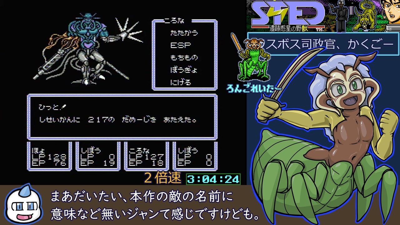 最終Part編集に着手してから、<br>WinUpdateがイヤでPCつけっぱなしにしてたゾ。<br><br>シリーズ完結できたし、ようやくUpdateにチャレンジや。<br>次、失敗繰り返したら「まぐねと」な!!<br><br><br>Part5 第3の塔攻略~エンディング まで<br><br><br>レギュ概要<br>・エンカ回避技の利用【あり】<br>・パスワード入手カット【あり】<br>・利用禁止技(1件):パラメータ無限増加技<br>・計測区間: 電源投入(orリセット) ~ ED"ALPHA Co."表示<br><br>プレイ環境<br>・ニューファミコン(連射機なし)<br>・LiveGamerExtreme3<br>・OBSStudio<br><br>=====<br>『STED 遺跡惑星の野望』(c) 1990 ケイアミューズメントリース All rights reserved.