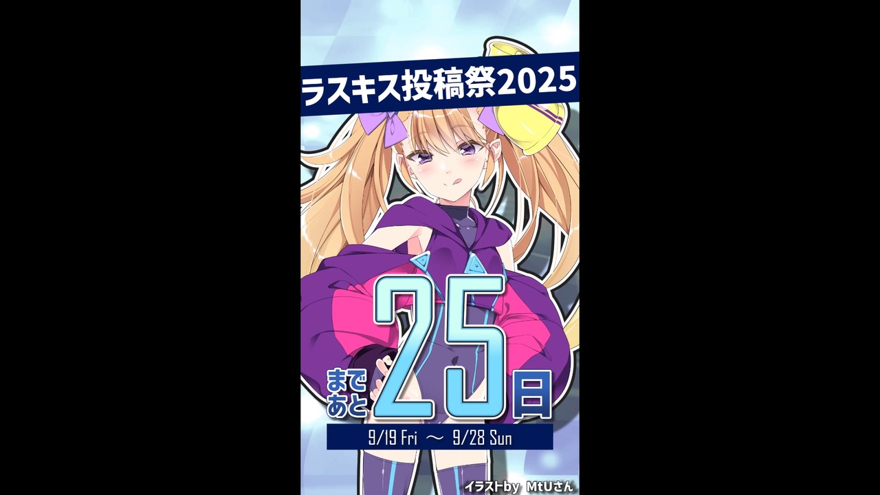#ラスキス投稿祭2025 までのカウントダウン開始!<br>【9/19】の開催まであと25日だよ💜<br><br>■ラスキス投稿祭2025開催期間<br>2025年9月19日(金)00:00~9月28日(日)23:59<br><br>■投稿祭の詳しい説明はこちら!<br><a href="https://production.lusty-kiss.com/archives/316" target="_blank" rel="noopener nofollow">https://production.lusty-kiss.com/archives/316</a><br><br>■投稿祭に使えるロゴイラスト素材はこちら!<br><a href="https://seiga.nicovideo.jp/seiga/im11642837" target="_blank" rel="noopener nofollow">https://seiga.nicovideo.jp/seiga/im11642837</a><br>※イラスト・ロゴデザイン:サボペン様(@sabti)<br><br>◆アルマちゃん@twitter<br><a href="https://twitter.com/arma_prg" target="_blank" rel="noopener nofollow">https://twitter.com/arma_prg</a><br><br>◆Lusty*Kiss Production 公式サイト<br><a href="https://production.lusty-kiss.com/" target="_blank" rel="noopener nofollow">https://production.lusty-kiss.com/</a><br><br>◆Lusty*Kiss Production YouTubeチャンネル<br><a href="https://www.youtube.com/channel/UCfxvv69Q0j0k2Rvm8x9vEhQ" target="_blank" rel="noopener nofollow">https://www.youtube.com/channel/UCfxvv69Q0j0k2Rvm8x9vEhQ</a><br><br>◆COEIROINK 公式サイト<br><a href="https://coeiroink.com/" target="_blank" rel="noopener nofollow">https://coeiroink.com/</a><br><br>------出演------<br>リリンちゃん:リリンちゃん@COEIROINK<br><a href="https://coeiroink.com/character/audio-character/lilin-h" target="_blank" rel="noopener nofollow">https://coeiroink.com/character/audio-character/lilin-h</a><br><br>------立ち絵------<br>リリンちゃん立ち絵素材(MtU 様)<br><a href="https://seiga.nicovideo.jp/seiga/im11235853" target="_blank" rel="noopener nofollow">https://seiga.nicovideo.jp/seiga/im11235853</a><br><br>------使用素材 ------<br>ディアちゃんの休日<br><a href="https://commons.nicovideo.jp/material/nc266496" target="_blank" rel="noopener nofollow">https://commons.nicovideo.jp/material/nc266496</a>