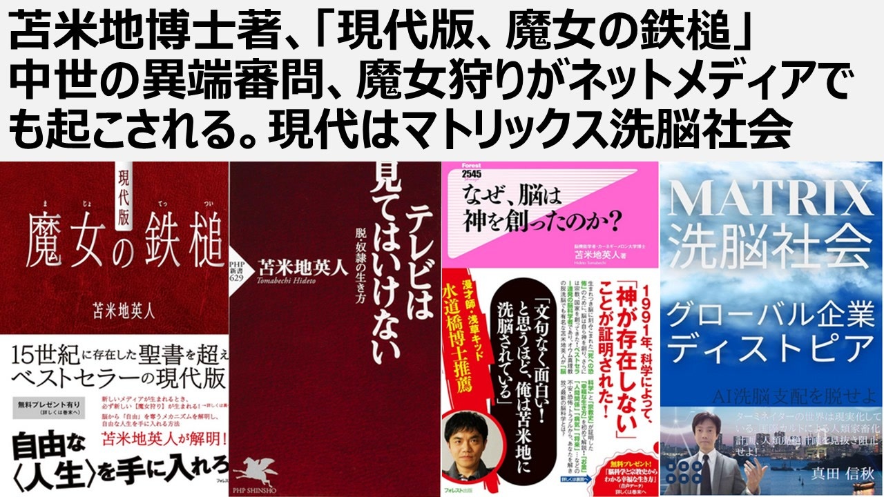 現代版 魔女の鉄槌 苫米地博士<br><a href="https://amzn.to/3HR8Wqr" target="_blank" rel="noopener nofollow">https://amzn.to/3HR8Wqr</a><br><br>なぜ、脳は神を創ったのか 苫米地博士<br><a href="https://amzn.to/45vb28y" target="_blank" rel="noopener nofollow">https://amzn.to/45vb28y</a><br><br>テレビは見てはいけない 脱・奴隷の生き方 苫米地博士<br><a href="https://amzn.to/4g070ss" target="_blank" rel="noopener nofollow">https://amzn.to/4g070ss</a><br><br>マトリックス洗脳社会 グローバル企業ディストピア 真田<br><a href="https://amzn.to/3Jwa2IA" target="_blank" rel="noopener nofollow">https://amzn.to/3Jwa2IA</a><br><br>メディア破棄宣言 高橋清隆さん<br><a href="https://amzn.to/4kAAmis" target="_blank" rel="noopener nofollow">https://amzn.to/4kAAmis</a><br><br>主権者行動計画書 正統政府設立計画 序説 徹底的不服従主義 悪法は法にあらず<br><a href="https://amzn.to/3FPmNfm" target="_blank" rel="noopener nofollow">https://amzn.to/3FPmNfm</a><br><br>日本国独立宣言論 私は独立を宣言する! 真田信秋<br><a href="https://amzn.to/3D90lwx" target="_blank" rel="noopener nofollow">https://amzn.to/3D90lwx</a><br> <br>主権者命令書 主権破壊を許すな 売国傀儡日本政府を解体せよ 真田<br><a href="https://amzn.to/49z51b5" target="_blank" rel="noopener nofollow">https://amzn.to/49z51b5</a><br> <br>マトリックス洗脳社会 グローバル企業ディストピア 真田<br><a href="https://amzn.to/4g2YmZg" target="_blank" rel="noopener nofollow">https://amzn.to/4g2YmZg</a><br><br>日米合同委員会廃絶・抗議街宣 日米合同委員会は無効である 我々は独立を宣言する 真田著、編<br><a href="https://amzn.to/405pVLY" target="_blank" rel="noopener nofollow">https://amzn.to/405pVLY</a><br><br>がんの真実 大橋眞先生<br><a href="https://amzn.to/4c08LUt" target="_blank" rel="noopener nofollow">https://amzn.to/4c08LUt</a><br><br>真田信秋 フェイスブック開設<br><a href="https://www.facebook.com/profile.php?id=61572637096470" target="_blank" rel="noopener nofollow">https://www.facebook.com/profile.php?id=61572637096470</a>