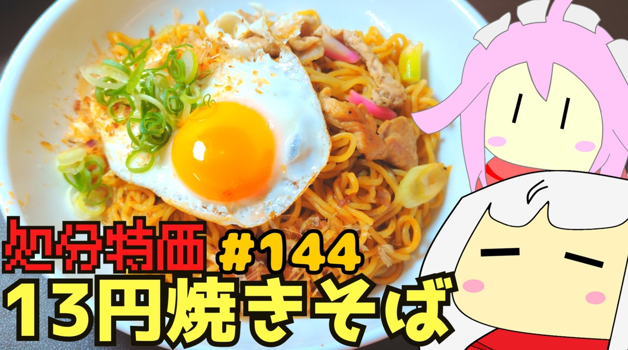 次→<a href="https://www.nicovideo.jp/watch/sm45341468" class="watch">sm45341468</a> (144_たらこ焼きそばペペロンチーノ_処分特価その3)<br><br>前→<a href="https://www.nicovideo.jp/watch/sm45325412" class="watch">sm45325412</a> (143_1キロそば)<br><br>処分特価シリーズその1→<a href="https://www.nicovideo.jp/watch/sm45044109" class="watch">sm45044109</a> (101_処分特価20円ラーメン_ゆっくりヘイホー)<br><br>どうも、私です。<br>処分特価やきそばでソースやきそばと塩焼きそば作って食べるよ~。<br>144_処分特価13円焼きそば_ゆっくりヘイホー<br>マイリス→<a href="https://www.nicovideo.jp/mylist/63910205" target="_blank" rel="noopener">mylist/63910205</a> (ラーメン食べ歩き日本一周 グルメ 車 その他)<br><br>~~~クレジット~~~<br>ボイスロイド・ソフトウェアトーク<br>VOICEROID2: 紲星あかり<br>VOICEVOX: 四国めたん<br><br>YMM4 ゆっくりMovieMaker4<br><a href="https://manjubox.net/ymm4/" target="_blank" rel="noopener nofollow">https://manjubox.net/ymm4/</a><br><br>BGM<br>After-Five<br><a href="https://dova-s.jp/bgm/play22169.html" target="_blank" rel="noopener nofollow">https://dova-s.jp/bgm/play22169.html</a><br>ーーーーーーーーーーーー<br><br><br><a target="_blank" href="https://qa.nicovideo.jp/faq/show/19424?site_domain=default" style="font-size: 13px;color: #657586; text-decoration: underline; line-height: 1.4">この動画は投稿者によって修正されました</a>
