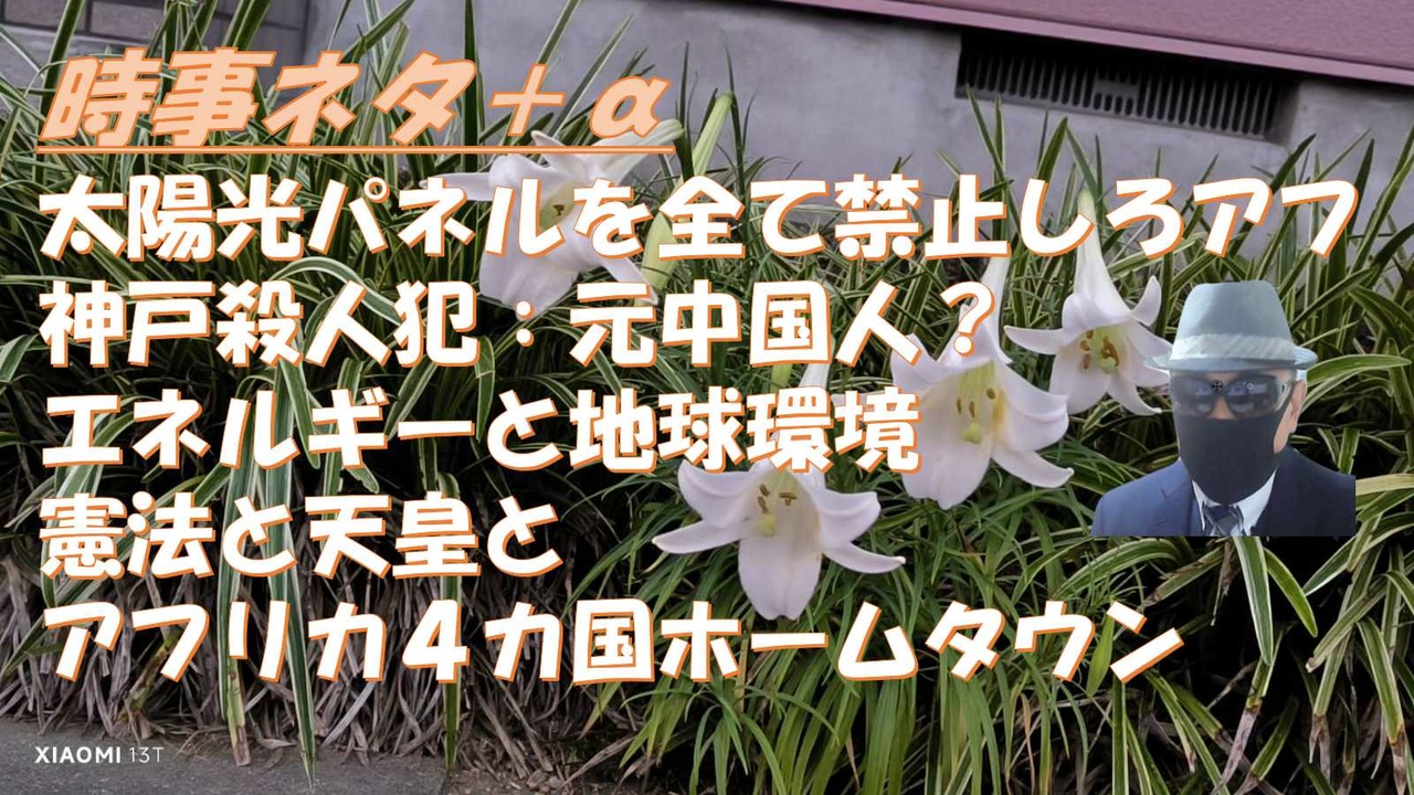 ◆政経プラットフォーム<br>もうタブーなし! 今こそ憲法と天皇について語ろう。 大西つねき氏 #427<br><br>◆深田萌絵<br>ビル・ゲイツ来日で自民画策! 高市首相でエボラ対策推進の真相?<br><br>トランプ-プーチン主導のウクライナ和平交渉【及川幸久】ライブ配信<br><br>◆すずぽん<br>「日本のアフリカ人のホームタウンを作ります!インド人も5万人追加します!」<br><br>2025.8.23リチャード・コシミズチャンネル第93回 後半<br>エネルギーと地球環境と日本の繁栄を考える(後半)<br><br>太陽光パネルを全て禁止しろとは言ってない←全面禁止の方がよいのでは?<br><br>◆安藤裕<br>成果主義は聞こえがいいが誰もが納得できる成果測定の方法はない。人の能力を正確に測定できる人はいない。できないことを、あたかもできるように考えて導入してしまったのがそもそも間違い。<br><br>検察幹部「どれほどのご心痛か、言葉もない」 勾留中に胃がん見つかり死亡した元顧問の遺族に謝罪 大川原化工機えん罪事件<br><br>高市早苗氏<br>(中国人が)土地や建物の取得を規制するのは、憲法が保障する財産権の侵害に繋がるので、憲法に抵触するだろうということで立法化は困難でした。<br><br>れいわがガソリン暫定税率廃止に反対したわけではないですよ<br>財源確保の上でとあるので「財源確保できなかったから減税しませんというオチが見えてると」大石さん<br><br>ガソリン減税の代わりに新税、政府検討 車の利用者から徴収する案<br><br>日本で最強の統一教会を代弁する政治家だった安倍晋三氏が内閣総理大臣を退いた2020年に参政党が結党され、安倍氏が暗殺された2022年に神谷宗幣氏が参議院に初当選した、と言う事実<br><br>石破首相、小泉元首相らを招き会食 政権運営や首脳外交など意見交換<br><br>【圧倒的クズ】国難石破「総裁選前倒し実施」を要求した議員の氏名を公表へ<br><br>【三条市が認定されました!】<br>「アフリカ・ホームタウン」<br><br>アフリカ4カ国、移民協定に基づき日本で公式故郷と特別ビザを取得<br><br>「ナイジェリアからの移民受け入れ」千葉・木更津市が完全否定<br><br>相手国が公表し、我が国は玉虫色の発表、受け入れ先の市は否定。<br><br>木更津市の声明全文を読んだけど認識が全然異なる。木更津市の声明が正しいのならナイジェリアか政府のどちらかがウソをついている。<br><br>中国人「中国ではシェアサイクルが普及してるので、日本でもそういうものがあると思った」と容疑を否認中<br><br>伊勢神宮近く「イスラム礼拝スペース設置」撤回 市民から疑問の声、ネットでも炎上し断念・伊勢市