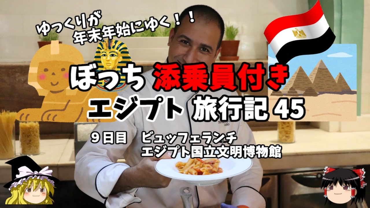 <span style="color: #ff0000; font-size: medium;"><u>※Youtubeで1話分、先行配信中 </u></span><br><span style="color: #0000ff; font-size: medium;"> <a href="http://www.youtube.com/c/なめこのぼっち旅" target="_blank" rel="noopener nofollow">http://www.youtube.com/c/なめこのぼっち旅</a></span><br><br><br>2023~2024年の年末年始にエジプト旅行に行ってきました!<br>その模様をお伝えします!<br><br><span style="color: #ff0000;">コミュニティー→co2910020</span><br><br>twitter→<a href="https://twitter.com/ryontan" target="_blank" rel="noopener nofollow">https://twitter.com/ryontan</a><br><br><a href="https://www.nicovideo.jp/watch/sm45324897" class="watch">sm45324897</a>← 前回 <span style="color: #ff0000;">次回 → <a href="https://www.nicovideo.jp/watch/sm45365291" class="watch">sm45365291</a></span><br><br>今作 エジプト旅行記→<a href="https://www.nicovideo.jp/mylist/77227599" target="_blank" rel="noopener">mylist/77227599</a><br>前作 飛鳥Ⅱクルーズ乗船記→<a href="https://www.nicovideo.jp/mylist/75717836" target="_blank" rel="noopener">mylist/75717836</a><br>北海道車中泊旅行記→<a href="https://www.nicovideo.jp/mylist/73483035" target="_blank" rel="noopener">mylist/73483035</a><br>モルディブ旅行記→<a href="https://www.nicovideo.jp/mylist/72339602" target="_blank" rel="noopener">mylist/72339602</a><br>東欧旅行記→<a href="https://www.nicovideo.jp/mylist/70339665" target="_blank" rel="noopener">mylist/70339665</a><br>解説・雑談系→<a href="https://www.nicovideo.jp/mylist/63171869" target="_blank" rel="noopener">mylist/63171869</a><br>スイス旅行記<span style="color: #000000; font-size: 14px;">→</span><a href="https://www.nicovideo.jp/mylist/68347869" target="_blank" rel="noopener">mylist/68347869</a><br>スペイン周遊記→<a href="https://www.nicovideo.jp/mylist/64537827" target="_blank" rel="noopener">mylist/64537827</a><br>韓国トルコ旅行記→<a href="https://www.nicovideo.jp/mylist/63654428" target="_blank" rel="noopener">mylist/63654428</a><br>車中泊旅行記→<a href="https://www.nicovideo.jp/mylist/54706524" target="_blank" rel="noopener">mylist/54706524</a><br>久米島(沖縄)旅行記→<a href="https://www.nicovideo.jp/mylist/63059251" target="_blank" rel="noopener">mylist/63059251</a><br>イギリスタイ旅行記→<a href="https://www.nicovideo.jp/mylist/60044833" target="_blank" rel="noopener">mylist/60044833</a><br>クルーズ旅行記→<a href="https://www.nicovideo.jp/mylist/57397685" target="_blank" rel="noopener">mylist/57397685</a><br>ドイツ周遊記→<a href="https://www.nicovideo.jp/mylist/54938346" target="_blank" rel="noopener">mylist/54938346</a><br>北海道旅行記→<a href="https://www.nicovideo.jp/mylist/52618057" target="_blank" rel="noopener">mylist/52618057</a><br>アメリカ横断記→<a href="https://www.nicovideo.jp/mylist/48621785" target="_blank" rel="noopener">mylist/48621785</a><br>イタリア周遊記→<a href="https://www.nicovideo.jp/mylist/45763559" target="_blank" rel="noopener">mylist/45763559</a><br>NY旅行記→<a href="https://www.nicovideo.jp/mylist/44343854" target="_blank" rel="noopener">mylist/44343854</a>