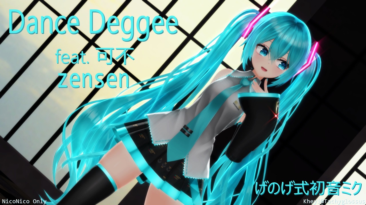今回は、前線/zensen 様の「Dance Deggee / 可不」を「げのげ式初音ミク」さんに踊ってもらいました。<br><br><br>[ お借りした物 ]<br><br>楽曲:「Dance Deggee / 可不」 前線/zensen 様 <a href="https://www.nicovideo.jp/watch/sm41948859" class="watch">sm41948859</a><br><br> 振付/踊り:Agustin Kim 様 <a href="https://youtu.be/kA4tVL09TfM" target="_blank" rel="noopener nofollow">https://youtu.be/kA4tVL09TfM</a><br> モーション:tktk 様 <a href="https://www.nicovideo.jp/watch/sm43358371" class="watch">sm43358371</a><br> カ メ ラ:tktk 様 <a href="https://www.nicovideo.jp/watch/sm43141853" class="watch">sm43141853</a><br><br>モデル:「げのげ式初音ミク」 げのげ 様 <a href="https://bowlroll.net/file/320915" target="_blank" rel="noopener nofollow">https://bowlroll.net/file/320915</a><br><br>ステージ:「ケージ風柵のある部屋」 AY妖埜 様 <a href="https://seiga.nicovideo.jp/seiga/im4620153" target="_blank" rel="noopener">im4620153</a><br><br>スカイドーム:「曇った夕暮れ空2」 ばんぞく 様 <a href="https://seiga.nicovideo.jp/seiga/im11449562" target="_blank" rel="noopener">im11449562</a><br><br>PowerShader 角砂糖 様 <a href="https://www.nicovideo.jp/watch/sm32258872" class="watch">sm32258872</a><br><br><br>その他エフェクト、ツール及び各種プラグインは、コンテンツツリー及び動画内のCreditをご確認ください。<br> <br>MMD動画を愛するすべての皆様に感謝を! <br><br><a href="https://www.nicovideo.jp/mylist/77988133" target="_blank" rel="noopener">mylist/77988133</a>:私が投稿した動画 List (30作品目)<br><a href="https://www.nicovideo.jp/mylist/78007841" target="_blank" rel="noopener">mylist/78007841</a>:ミクさんに「みくうた」以外の曲を踊ってもらった作品集 (13作目)<br><br>[追記]<br>実は、7月の3作目から投稿予定よりも少しずつ遅れていまして、本作では10日の遅れとなってしまいました。<br>そんな訳で、1年目の最後の作品になるはずが、2年目の最初の作品になってしまいました (苦笑)<br>1周年の御礼用として別に動画を用意しようと思っていたのですが時間的に無理なので、静画の方に御礼を上げさせていただきました。[ <a href="https://seiga.nicovideo.jp/seiga/im11661895" target="_blank" rel="noopener">im11661895</a> ] よろしければご覧くださいませ m(_ _")m<br><br>追記2:(最終:2025/08/27/ 23:54頃)<br>ミーネンロイマー 様、L3 様、xf108 様、<br>Sonic Voice/39年組 様、祝・投稿1周年! 様、<br>広告をしていただきまして、ありがとうございました!<br>御礼として、静画 (<a href="https://seiga.nicovideo.jp/seiga/im11662048" target="_blank" rel="noopener">im11662048</a>) を投稿させていただきました m(_ _")m<br><br>追記3:(2025/08/26/ 22:22頃)<br>おまけで縦長な静画 (<a href="https://seiga.nicovideo.jp/seiga/im11662057" target="_blank" rel="noopener">im11662057</a>) も投稿しました。よろしければ見てやってくださいませ ♪
