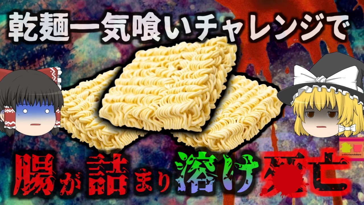 <a href="#" class="seekTime" data-seekTime="00:29" onclick="seekNicoPlayer('#00:29'); return false;">#00:29</a> インスタント麺で〇亡した少年<br><a href="#" class="seekTime" data-seekTime="1:29" onclick="seekNicoPlayer('#1:29'); return false;">#1:29</a> 消化器官に詰まった麺<br><a href="#" class="seekTime" data-seekTime="2:00" onclick="seekNicoPlayer('#2:00'); return false;">#2:00</a> 製品自体に問題はなかったが…<br><a href="#" class="seekTime" data-seekTime="2:32" onclick="seekNicoPlayer('#2:32'); return false;">#2:32</a> 危険なチャレンジ<br><a href="#" class="seekTime" data-seekTime="4:00" onclick="seekNicoPlayer('#4:00'); return false;">#4:00</a> 参加者は安全だと主張するが<br><a href="#" class="seekTime" data-seekTime="4:38" onclick="seekNicoPlayer('#4:38'); return false;">#4:38</a> メーカーが推奨しない食べ方<br><a href="#" class="seekTime" data-seekTime="6:12" onclick="seekNicoPlayer('#6:12'); return false;">#6:12</a> 水で戻す食べ物を大量摂取する危険<br><a href="#" class="seekTime" data-seekTime="7:11" onclick="seekNicoPlayer('#7:11'); return false;">#7:11</a> 一部の例外を除き推奨されない食べかた<br><br><br><br>引用・出展・参考文献(視聴者提供資料など<br>Wikipedia アイス・バケツ・チャレンジ<br><a href="https://x.gd/VTv1a" target="_blank" rel="noopener nofollow">https://x.gd/VTv1a</a><br>dailymail<br><a href="https://x.gd/PjRK4" target="_blank" rel="noopener nofollow">https://x.gd/PjRK4</a><br>日清チキンラーメン<br><a href="https://x.gd/de6DI" target="_blank" rel="noopener nofollow">https://x.gd/de6DI</a><br><br />※この動画は過去の事件を知り、現在でも同じことが発生する危険性を再認識、関与しないように促すための動画であり、視聴者を扇動、動揺を誘うためのコンテンツではありません。<br><br>ご要望にお応えして、メンバーシップの開設を行いました。<br>下記URLからも登録可能ですので、ご興味がある方は是非ご参加ください。<br><a href="https://www.youtube.com/channel/UCcT5a1J7XJW7CLYI2RKl4pw/join" target="_blank" rel="noopener nofollow">https://www.youtube.com/channel/UCcT5a1J7XJW7CLYI2RKl4pw/join</a><br><br><br>Twitter<br>→<a href="https://twitter.com/yukkurisurutoko" target="_blank" rel="noopener nofollow">https://twitter.com/yukkurisurutoko</a><br><br>取り急ぎ、簡易的にですがマイリストを作りました。<br>【ゆっくり解説】事故・事件関係紹介リスト <br><a href="https://www.nicovideo.jp/mylist/71034319" target="_blank" rel="noopener nofollow">https://www.nicovideo.jp/mylist/71034319</a><br>【ゆっくり解説】放射線系事故<br><a href="https://www.nicovideo.jp/mylist/71034368" target="_blank" rel="noopener nofollow">https://www.nicovideo.jp/mylist/71034368</a><br>【ゆっくり解説】鉄道系事故・事件関連<br><a href="https://www.nicovideo.jp/mylist/71034379" target="_blank" rel="noopener nofollow">https://www.nicovideo.jp/mylist/71034379</a>