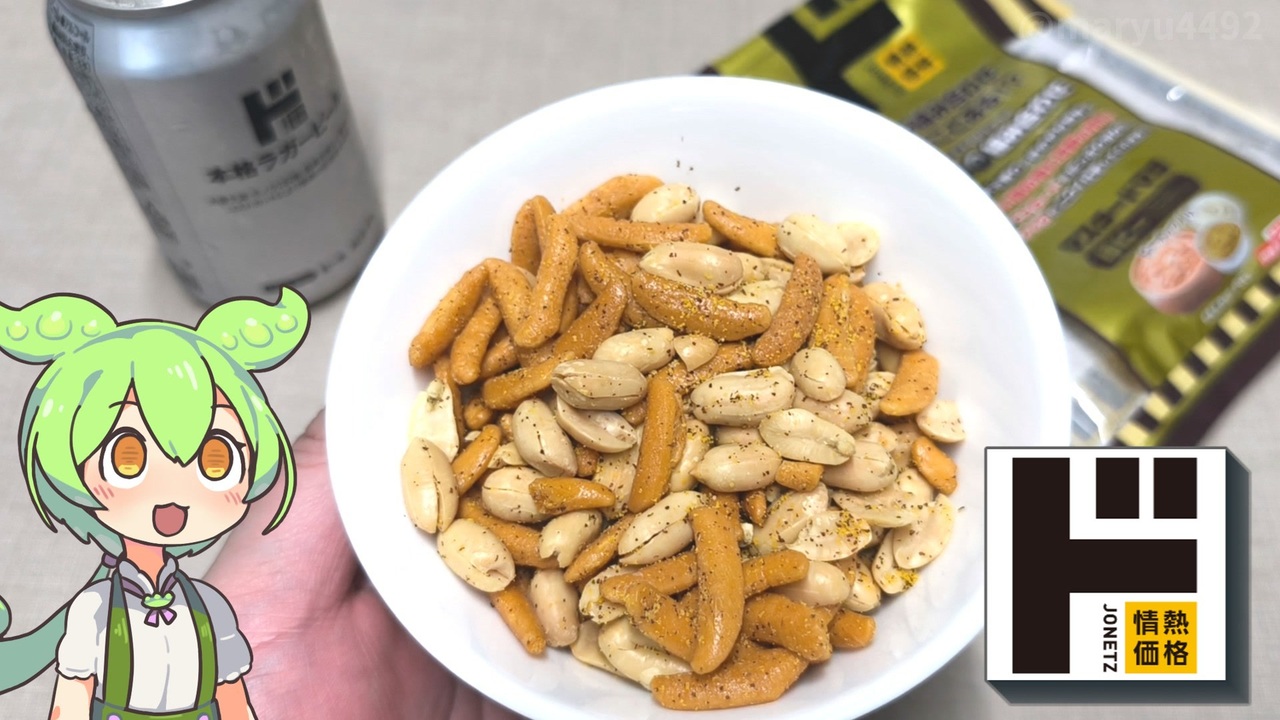 ドン・キホーテのおつまみコーナーで見かけた<br>マスタードマヨ味の柿の種です。<br><br><br>【関連動画】<br>ドン・キホーテの「揚げ揚げ天ぷらスナック~めんつゆ仕立て~ 野菜編」2024.02.07<br><a href="https://www.nicovideo.jp/watch/sm43332160" target="_blank" rel="noopener nofollow">https://www.nicovideo.jp/watch/sm43332160</a><br><br>【参考】<br>マスタードマヨ 柿ピー(ドン・キホーテ)<br><a href="https://www.donki.com/j-kakaku/product/detail.php?item=2619" target="_blank" rel="noopener nofollow">https://www.donki.com/j-kakaku/product/detail.php?item=2619</a><br>ラガービール 330ml(ドン・キホーテ)<br><a href="https://www.donki.com/j-kakaku/product/detail.php?item=4970" target="_blank" rel="noopener nofollow">https://www.donki.com/j-kakaku/product/detail.php?item=4970</a><br>谷貝食品工業株式会社<br><a href="http://www.yagai-foods.co.jp/index.html" target="_blank" rel="noopener nofollow">http://www.yagai-foods.co.jp/index.html</a><br>企業情報 沿革(谷貝食品工業株式会社)<br><a href="http://www.yagai-foods.co.jp/03_corporation/history.html" target="_blank" rel="noopener nofollow">http://www.yagai-foods.co.jp/03_corporation/history.html</a><br>株式会社ヤガイ<br><a href="https://www.yagai.net/" target="_blank" rel="noopener nofollow">https://www.yagai.net/</a><br>おやつパンダとは(株式会社ヤガイ)<br><a href="https://www.yagai.net/brand/panda/" target="_blank" rel="noopener nofollow">https://www.yagai.net/brand/panda/</a><br><br>【使用した素材】(※敬称略) <br>(合成音声)VOICEVOX/ずんだもん/四国めたん/春日部つむぎ<br><a href="https://voicevox.hiroshiba.jp/" target="_blank" rel="noopener nofollow">https://voicevox.hiroshiba.jp/</a> <br>(立ち絵)坂本アヒル<br> <a href="https://seiga.nicovideo.jp/seiga/im10788496?track" target="_blank" rel="noopener nofollow">https://seiga.nicovideo.jp/seiga/im10788496?track</a><br>(楽曲)甘茶の音楽工房/「楽しい麦畑」「フルーツパフェ」「お城の舞踏会」<br><a href="https://amachamusic.chagasi.com/" target="_blank" rel="noopener nofollow">https://amachamusic.chagasi.com/</a>