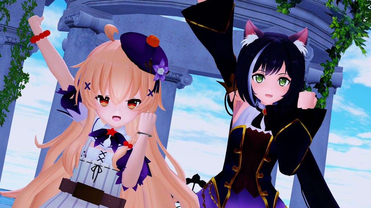 身長差コンビのキャルちゃん&クコちゃんに夏の定番曲『真夏のレターレインボー』を踊って頂きました。<br><br>お借りしたもの<br>Music: @まさたか様/<a href="https://www.nicovideo.jp/watch/sm21605926" class="watch">sm21605926</a><br><br>振付: トレース元 足太ぺんた様/<a href="https://www.nicovideo.jp/watch/sm26481215" class="watch">sm26481215</a> <br>Motion: 0729robox様/<a href="https://www.nicovideo.jp/watch/sm27102085" class="watch">sm27102085</a><br><br>Model:<br>キャル/i-Fox様/<a href="https://youtu.be/st-bW4whusQ " target="_blank" rel="noopener nofollow">https://youtu.be/st-bW4whusQ </a><br>こんにゃく式クコ/<a href="https://www.nicovideo.jp/watch/sm34176455" class="watch">sm34176455</a><br>Bracelet: KEITEL様/<a href="https://seiga.nicovideo.jp/seiga/im8046728" target="_blank" rel="noopener">im8046728</a><br>Ring: 操ちゃん/<a href="https://seiga.nicovideo.jp/seiga/im11280894" target="_blank" rel="noopener">im11280894</a><br><br>Stage: Samsink様/Silent Garden <br><a href="https://www.deviantart.com/samsink/art/MMD-STAGE-Silent-Garden-V1-00-DL-565782781" target="_blank" rel="noopener nofollow">https://www.deviantart.com/samsink/art/MMD-STAGE-Silent-Garden-V1-00-DL-565782781</a><br><br>Ray MMD: Rui様/<a href="https://github.com/ray-cast/ray-mmd" target="_blank" rel="noopener nofollow">https://github.com/ray-cast/ray-mmd</a><br><br>以下コンデンツツリーを御覧になって下さい。<br>以上ありがとうございました。<br><br>★キャルちゃんが大好きでたまらないクコちゃんとそのキャルちゃんとの久しぶりのコンビです。<br>クコちゃんは手足が短めで動きが速いダンスは少し苦手なのですが頑張ってくれました。<br>ふたりにどんな会話があったのか気になる所ですね。<br><br>ヌクヌク様、アーリル様、L3様、Limelight様、針井 原也様、操ちゃん、KEITEL様、ねこまんま(猫飯)様、<br>シロミミズク様、yossy様、なとり復興桜様、tokai200x様、沈黙の人様、かつサンド様、アマリリス様、<br>どりーむまっぷ様、広告ありがとうございました。