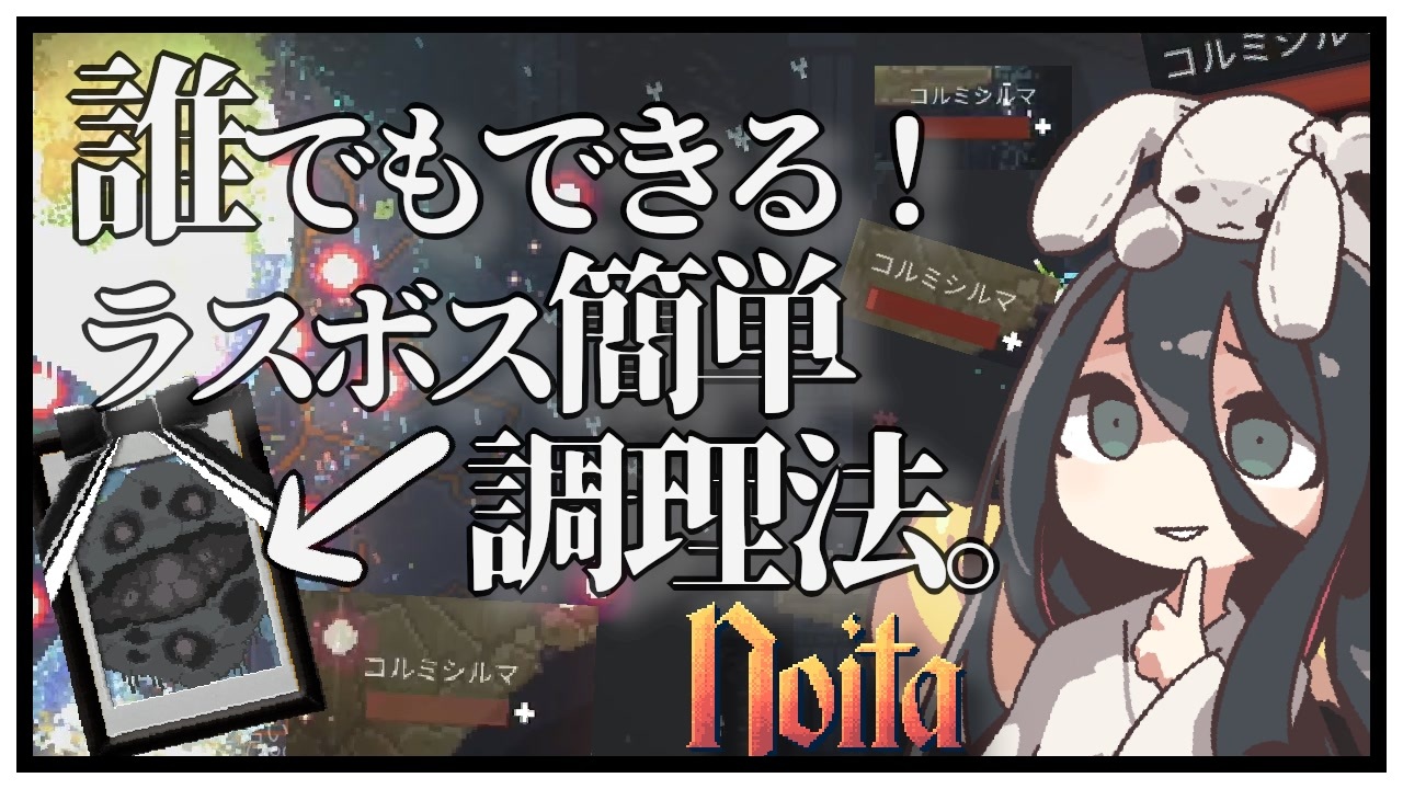 身構える程強くは無いけれど、無闇にナメられる程弱くも無い、そんなラスボスのコルミくん<br><br>noita初心者向けの攻略情報兼反面教師動画<br>次→<a href="https://www.nicovideo.jp/watch/sm45372881" class="watch">sm45372881</a><br><br><br><br>youtubeにも動画を上げてます。<br><a href="https://www.youtube.com/@ki2yenjo/videos" target="_blank" rel="noopener nofollow">https://www.youtube.com/@ki2yenjo/videos</a><br><br>立ち絵はこちらを使用させていただいています。ありがとうございます!<br><a href="https://seiga.nicovideo.jp/seiga/im11232921" target="_blank" rel="noopener nofollow">https://seiga.nicovideo.jp/seiga/im11232921</a><br>VOICEVOX:中国うさぎ<br>BGM:騒音のない世界<br><a href="https://noiselessworld.net/" target="_blank" rel="noopener nofollow">https://noiselessworld.net/</a><br>BGMer<br><a href="https://bgmer.net/" target="_blank" rel="noopener nofollow">https://bgmer.net/</a><br><br>