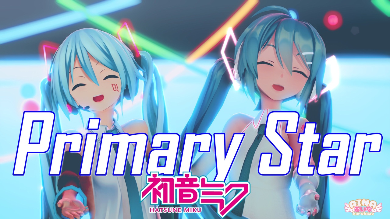 ☆1000再生達成~見て頂いた皆さんほんとにありがとうございます☆<br>8/31~ミクさんお誕生日おめでとうございますー♪ <br>今回はつみミクさんとSourミクさんのミクさん動画ですー☆ <br>今年もお祝い出来て良かったのですー(o^―^o)ニコ <br>カメラを調整しながらちょっと改変しています~ <br>まだまだ色々ダメダメな所が多いのですけど、見て頂けたら嬉しいです~( 〃 ❛ᴗ❛ 〃 ) <br><br>4K動画はこちらへ↓<br><a href="https://www.youtube.com/@AIna-channel" target="_blank" rel="noopener nofollow">https://www.youtube.com/@AIna-channel</a><br><br>今回お借りしてる情報は↓へ♪ <br>楽曲 :Reno - Primary Star feat.初音ミク様 / <a href="https://www.nicovideo.jp/watch/sm39481197" class="watch">sm39481197</a><br><a href="https://www.youtube.com/watch?v=IAKYrFtaPXU" target="_blank" rel="noopener nofollow">https://www.youtube.com/watch?v=IAKYrFtaPXU</a> <br>モーション:mobiusP様/ <a href="https://www.nicovideo.jp/watch/sm40352087" class="watch">sm40352087</a><br>モーションアクター&振り付け 舞a.k.a.ぬるぽん(@nullpon1215)<br>カメラ:テットテト様/ <a href="https://www.nicovideo.jp/watch/sm40402961" class="watch">sm40402961</a><br>(春風あいな-改変)<br>☆モデル☆<br>つみ式初音ミク:つみだんご様/ <a href="https://www.nicovideo.jp/watch/sm29503530" class="watch">sm29503530</a> <br>Sour式初音ミク:Sour暄様<br><a href="https://www.nicovideo.jp/user/25576836" target="_blank" rel="noopener nofollow">https://www.nicovideo.jp/user/25576836</a><br>☆ステージ☆<br>一護牛乳様:<a href="https://seiga.nicovideo.jp/seiga/im11557778" target="_blank" rel="noopener">im11557778</a><br>Cotton Pulser様:<a href="https://seiga.nicovideo.jp/seiga/im9103253" target="_blank" rel="noopener">im9103253</a><br>むよむよ様:<a href="https://seiga.nicovideo.jp/seiga/im8768326" target="_blank" rel="noopener">im8768326</a><br>セゼル様:<a href="https://seiga.nicovideo.jp/seiga/im11389016" target="_blank" rel="noopener">im11389016</a><br>☆スカイドーム☆<br>とじる様:<a href="https://seiga.nicovideo.jp/seiga/im11235415" target="_blank" rel="noopener">im11235415</a><br>怪獣対若大将P様:<a href="https://seiga.nicovideo.jp/seiga/im6752417" target="_blank" rel="noopener">im6752417</a><br>初音ミクロゴ:公式素材<br>☆エフェクト☆<br>Rui様/そぼろ様/less様/おたもん様/針金P様/ましまし様 ikeno様/glam様/化身バレッタ様/ミーフォ茜様<br>Johndoo様/roz様/Sano_様/のりしお様/ビームマンP様/Caeru様/ame2様/ひいらぎ様<br>更科様<br><br>お借りさせて頂いている皆様~いつもありがとうございます!<br>動画を見て頂いている皆様~まだまだ調整の甘いお勉強中のあいなですけど、いつもほんとうにありがとうございます!<br><br>追記☆<br>広告ありがとうございます!文字数制限で記載は↓へ♪<br><a href="https://x.com/AinaHarukaze" target="_blank" rel="noopener nofollow">https://x.com/AinaHarukaze</a><br>コメント・いいね・マイリス、ありがとうございます!<br>