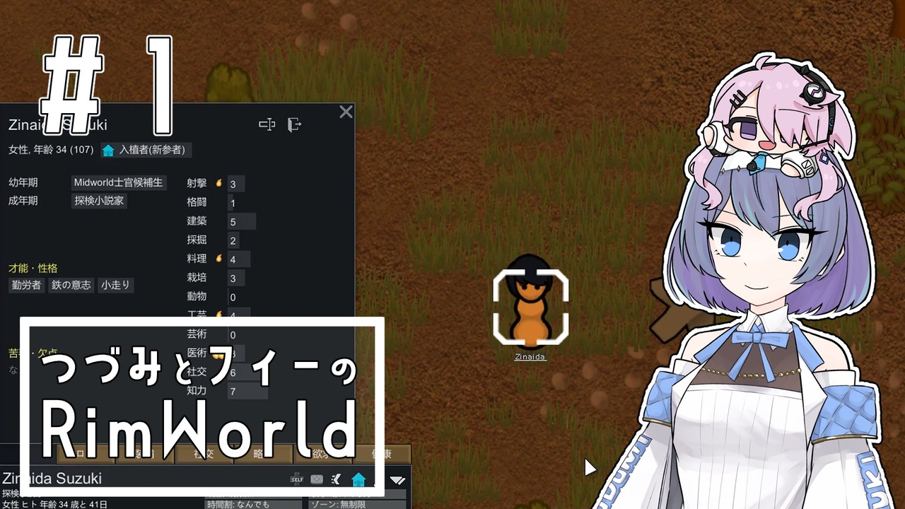 この動画はつづみさんとフィーちゃんのrimworld実況です。<br>ネイキッドシナリオで惑星からの脱出を目指します!<br>またこの動画はめがさら様主催の自作立ち絵投稿祭に参加させていただいてます。<br>頭にのせることが出来るフィーちゃんの立ち絵を書いてみたので、是非使ってみてください!<br>→<a href="https://seiga.nicovideo.jp/seiga/im11631659" target="_blank" rel="noopener">im11631659</a><br><br>これ←part1 次→そのうち<br><br>◇概要<br>・バージョン…1.6<br>・難易度…生存奮闘<br>・ストーリーテラー…カサンドラ<br>・シナリオ…ネイキッド<br><br>◇出演<br>・すずきつづみ(CeVIOAI)…自作立ち絵<br>・フィーちゃん(CeVIOAI)…自作立ち絵<br>・さとうささら(CeVIOAI)<br><br>〈使用MOD〉<br>・Harmony<br>・Smarter Construction<br>・CM Color Coded Mood Bar<br>・[FSF] Filth Vanishes With Rain And Time<br>・EdB Prepare Carefully<br>・EdB Prepare Carefully日本語翻訳<br>・Timelazse2023<br>・Snap Out!<br>・Snap Out!JP<br>・Progress Renderer<br>・RimHUD<br>・RimHUD日本語追加<br>・No Random Relations<br>・SimpleCameraSetting<br><br>◇お借りした素材等<br>〈BGM〉敬称略<br>DOVA-SYNDROME→ <a href="https://dova-s.jp/" target="_blank" rel="noopener nofollow">https://dova-s.jp/</a> より<br>・Morning Tea / のる<br>・私たちは、雨を眺めていた。/ のる<br>・Ordinary Magic / Kei Morimoto<br><br>他コンテンツツリーに記載<br>