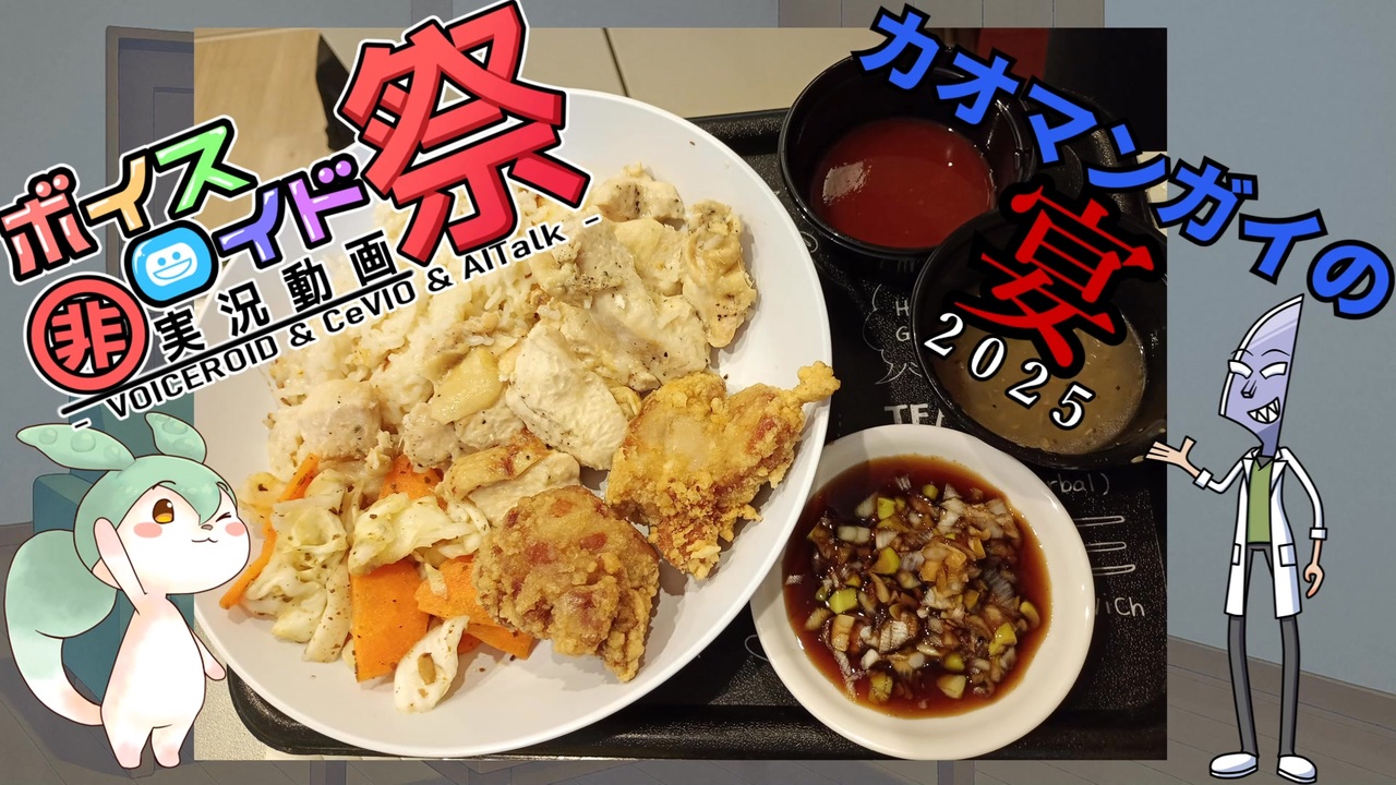 第11回ひじき祭、およびカオマンガイの宴2025へ参加の動画となります<br>主催の皆様、楽しい催しをありがとうございました!<br><br>8月初旬、カオマンガイリレーに飯テロされたので、翌日の夕食に作りました<br>参考にした先駆者様は親作品に登録しています<br>使用調味料はおそらく合っているはずですが、炊飯の際に醬油を入れた記憶が有るような無いような…<br>2週間近く開けて編集するものではない…みんなも気をつけなはれや!<br><br>劇場の台本考えるのはとても楽しかったです<br>「カオマンガイの宴」は字体が標準では無かったので、妥協しました…<br><br><br>動画編集:ゆっくりMovieMaker4 Lite <a href="https://manjubox.net/ymm4/" target="_blank" rel="noopener nofollow">https://manjubox.net/ymm4/</a><br>合成音声:VOICEVOX:ずんだもん <a href="https://voicevox.hiroshiba.jp/" target="_blank" rel="noopener nofollow">https://voicevox.hiroshiba.jp/</a><br> VOICEVOX:剣崎雌雄 同上<br>X:<a href="https://x.com/amaouto" target="_blank" rel="noopener nofollow">https://x.com/amaouto</a> (最近はまあまあ見てます)<br>