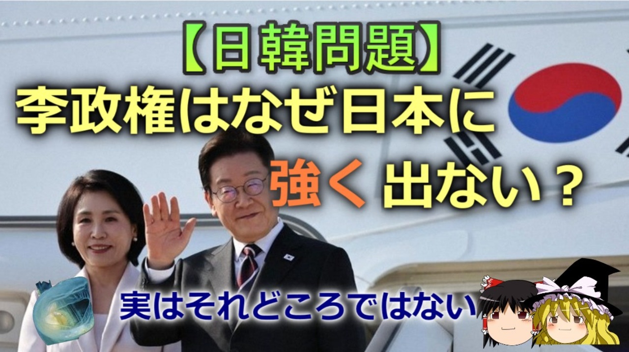 さて、本日は様々な韓国内外の事情が重なった結果、日本に見かけ上融和的になっている韓国の李政権について、なぜそうなっているのかについてです。<br>どようび体操第一<br>本日のブログ記事<br><a href="https://oogchib.hateblo.jp/entry/2025/08/31/210000" target="_blank" rel="noopener nofollow">https://oogchib.hateblo.jp/entry/2025/08/31/210000</a><br><br>元記事<br>李政権はなぜ日本に強く出ない?<br><a href="https://oogchib.hateblo.jp/entry/2025/08/21/021155" target="_blank" rel="noopener nofollow">https://oogchib.hateblo.jp/entry/2025/08/21/021155</a><br><br>注意<br>・この動画は「日韓の価値観の違い」を扱っています<br><br>・動画のスタンスは「価値観に善悪や優劣は存在しない」というものです<br><br>・相手が不法を働いているからとこちらが不法をして良い理由にはなりません<br><br>・自身の常識が相手にとっても常識とは限りません、「他者がそれを見たら<br>どう思うか」という客観性を常に持ちましょう。<br><br>・日常生活で注意する程度には言動に注意を心がけてください<br><br>・リクエストは原則受け付けていません<br><br>・引用ソースへのリンクが同時掲載のブログにあります<br><br>・毎週日曜日更新<br><br><br>引用ソースと動画のテキストをブログ日韓問題(初心者向け)のほうへ掲載しています。<br><br>もしよかったらチャンネル登録や「いいね」ボタンクリックよろしくお願いします。<br><br>日韓問題(初心者向け)<br><a href="https://oogchib.hateblo.jp/" target="_blank" rel="noopener nofollow">https://oogchib.hateblo.jp/</a><br><br>暇つぶしにどうぞ<br><a href="http://ooguchib.blog.fc2.com/" target="_blank" rel="noopener nofollow">http://ooguchib.blog.fc2.com/</a> <br><br>X(旧twitter) @ooguchib<br><a href="https://x.com/ooguchib" target="_blank" rel="noopener nofollow">https://x.com/ooguchib</a><br><br>前 <a href="https://www.nicovideo.jp/watch/sm45332032" class="watch">sm45332032</a> <a href="https://www.nicovideo.jp/mylist/59069876" target="_blank" rel="noopener">mylist/59069876</a> 次 <a href="https://www.nicovideo.jp/watch/sm45381039" class="watch">sm45381039</a><br><br>番外編マイリスト<br><a href="https://www.nicovideo.jp/mylist/62992608" target="_blank" rel="noopener">mylist/62992608</a><br><br>YouTube版<br><a href="https://youtu.be/CJHgc0-ZDxs" target="_blank" rel="noopener nofollow">https://youtu.be/CJHgc0-ZDxs</a><br><br>