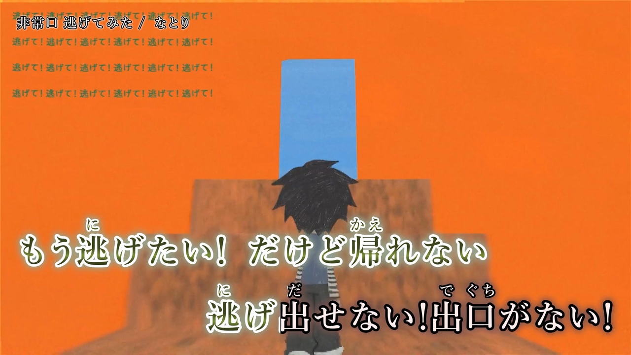 なとり 様の『 非常口 逃げてみた 』 のカラオケ動画 です。<br>※本動画の視聴はあくまでカラオケの練習・持ち込みカラオケ目的にだけにして頂き、「楽曲ならびにMVの視聴は本家様をご利用ください。」<br>・本家様 [ <a href="https://youtu.be/Ou-dGbXLZa8?si=RZ2LBBCnn75FsTN-&t=10" target="_blank" rel="noopener nofollow">https://youtu.be/Ou-dGbXLZa8?si=RZ2LBBCnn75FsTN-&t=10</a> ]<br><br><br>※音源をお借りしました。<br>※動画に不都合等ございましたら、お手数ですが <a href="https://x.com/annefreaks432" target="_blank" rel="noopener nofollow">https://x.com/annefreaks432</a> までお問い合わせくださいませ。<br><br><br>Original Credit(敬称略)<br>[MUSIC]<br>Music & Words : なとり<br>Arrangement : なとり<br>Mix Engineer : 佐々木優<br>Backing Vocal : デフォ子<br><br>[VIDEO]<br>Director:Emi Fukayama<br><br>Illustration<br>Lead Illustrator / Logo Designer:iimememe<br><br>CG Team<br>Technical Director:Tomoki Tanaka<br>Pipeline Designer:Koto Asari<br>Unity Engineer:ryopon<br>Lead Modeler:Tomoki Tanaka / Yuma Tahara<br>3D Animator:Tomoki Tanaka / Yuma Tahara<br><br>CG Team - Armonia.inc<br>Production Manager:Masayoshi Iwasaki<br>Lead Modeler:Yujiro Iwanaga<br>Modeler:Hayato Okawa <br><br>Art Department<br>Azuki Osanai<br>Shuhei Kobayashi<br>Hanae Sugi<br>Rio Sawada<br><br>Editorial<br>Ingame Cinematographer / Editor:Emi Fukayama<br>Production Manager:Tomoki Tanaka<br>Interpreter:Sawa<br>Production Support:Hasumi Ono<br><br> <br>off vocal : <a href="https://www.nicovideo.jp/watch/sm45358961" target="_blank" rel="noopener nofollow">https://www.nicovideo.jp/watch/sm45358961</a>