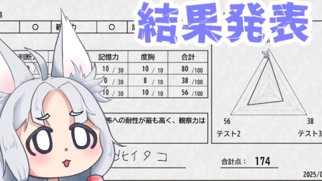 <span style="font-size: 18px;">5割超えているので及第点です</span><br>記憶力を強化する施術ってないですかね?<br><br><span style="font-size: 16px;"><u>山バジル様・サーラちゃんさま小公国様・きゃんご様・紅羽根様・すべる様・試製ガーリバス様・CtnSasuke様×4・バブル様・Toxin9182様・とたろ様</u></span><br><span style="font-size: 16px;">広告ありがとうございました!</span><br><br>動画に入れるの忘れてました <br><s>何でもするから許して</s><br><br>VOICEVOX:Voidoll(CV:丹下桜)<br><a href="https://voicevox.hiroshiba.jp/" target="_blank" rel="noopener nofollow">https://voicevox.hiroshiba.jp/</a><br><br>ストアページ<br><a href="https://store.steampowered.com/app/3906770/_/" target="_blank" rel="noopener nofollow">https://store.steampowered.com/app/3906770/_/</a><br><br>お借りした立ち絵<br><br>(東北イタコ)<br>裏葉様<br><a href="https://seiga.nicovideo.jp/seiga/im10910180" target="_blank" rel="noopener nofollow">https://seiga.nicovideo.jp/seiga/im10910180</a><br><br>(ちびぃたこ)<br>ベルナ様<br><a href="https://seiga.nicovideo.jp/seiga/im11211094" target="_blank" rel="noopener nofollow">https://seiga.nicovideo.jp/seiga/im11211094</a><br><br>(京町セイカ)<br>EST様<br><a href="https://seiga.nicovideo.jp/seiga/im7081791" target="_blank" rel="noopener nofollow">https://seiga.nicovideo.jp/seiga/im7081791</a><br><br>(東北イタコ・東北きりたん)<br>カミヨシ様<br><a href="https://seiga.nicovideo.jp/seiga/im11488063" target="_blank" rel="noopener nofollow">https://seiga.nicovideo.jp/seiga/im11488063</a><br><a href="https://seiga.nicovideo.jp/seiga/im11479497" target="_blank" rel="noopener nofollow">https://seiga.nicovideo.jp/seiga/im11479497</a><br><br>山バジル様・サーラちゃんさま小公国様・きゃんご様・紅羽根様・すべる様・試製ガーリバス様<br>CtnSasuke様×4・バブル様・とたろ様