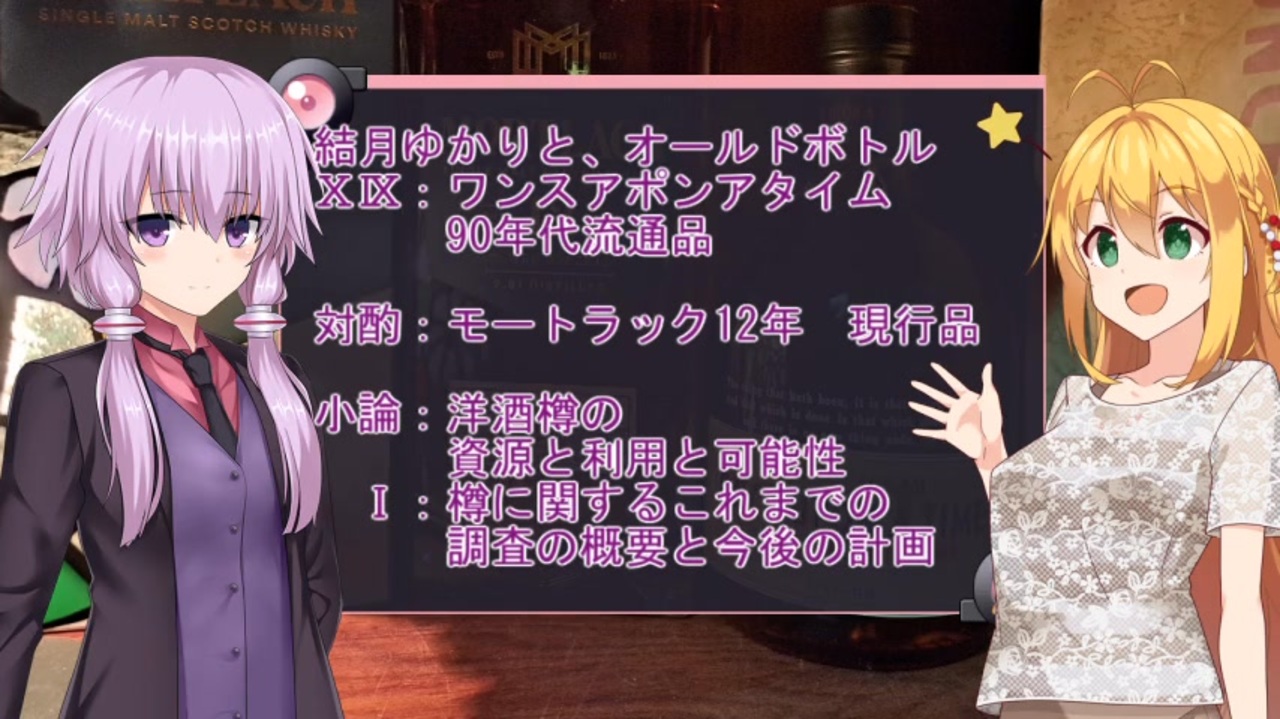 養生と公開してもいい内容の精査とのため、次はたぶん冬のとり料理祭になります。(25/10/22追記)<br>何とか間に合いました。文献が増えて末尾が間延びしていますが、<br>動画と説明欄のどこに押し込んでも溢れるのでこのままとします。<br>参考文献の掲示も、リンクが入らないのでタイトルだけです。<br><br>参考文献・資料<br>Ⅰ:古賀邦正(2018)「ウイスキーの科学」<br>Ⅱ:西信之(1992-1994,科研費助成事業) 「クラスターレベルで見た超分子構造の発生とその結合様式」<br>Ⅲ:Emma E. Shuttleworth. et.al.(2023) "Molecular dynamics simulations of flavour molecules in Scotch whisky"<br>Ⅳ:松本光朗(2001)「日本の森林による炭素蓄積量と炭素吸収量」<br>Ⅴ:Juan Infante-Amate et.al.(2023)"Historical changes in biomass carbon stocks in the Mediterranean (Spain, 1860–2010)"<br>Ⅵ:J.Valcarcel Munoz et.al (2021) ”Evolución de parámetros fisicoquímicos, composición volátil y compuestos polifenólicos del Brandy de Jerez durante su envejecimiento en Sistemas de Criaderas y Solera” <br>Ⅶ:河村文郎(2022)「樽酒の味覚」,山林(1663),29-35<br>Ⅷ:大塚祐一郎(2023)「木材の新しい前処理によって可能となる「木の酒」の製造技術とその特徴」<br>Ⅸ:堀添浩俊(2017)「水熱爆砕による草木質系バイオマスの省エネ高効率糖化前処理の研究」<br>Ⅺ:田畑研二,亀井一郎,阪井敦(2018)「リグニン含有バイオマスからフェノール類の製造方法」<br>Ⅻ:Sherry Casks: A Whisky Lovers Guide<br>ⅩⅢ:篠原 隆(1972)コニャックブランデーの思い出 (I)<br>ⅩⅣ:篠原 隆(1972)コニャックブランデーの思い出 (II)<br><br><a target="_blank" href="https://qa.nicovideo.jp/faq/show/19424?site_domain=default" style="font-size: 13px;color: #657586; text-decoration: underline; line-height: 1.4">この動画は投稿者によって修正されました</a>