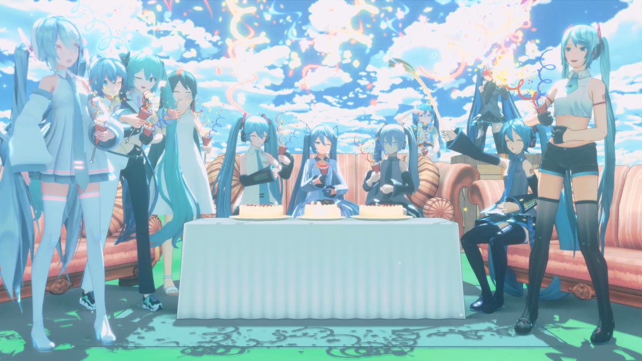 ミクさん誕生日おめでとう!!(遅刻)<br>今年は静画でお祝いしようと思ったのですが、他の方のミク誕動画を見て、やっぱり動画でお祝いしたくなりました。<br>どうせなら全員でお祝いしたかったので、今まで動画にしたミクさん全員に踊ってもらいました!その結果、1人合作みたいな動画になりました。<br><br>音楽:DECO*27様<br>振付:まりやん様<br>ダンス:わた様<br>モーション・カメラ:るーと様<br>モデル:三目YYB様/revol様/六様/VRoid様/HyperCheese様/Pu様/<br>ネットがタヒんでいる無名モデラー様/Lat様/カルも様/Sour暄様/須々木ピコリ様/とろり様<br>ステージ:BTA/kerolin jo様/ひるね様/SkyBlue様/NOR様/まきろん様/yuyu様/<br>bentou-t様/ビームマンP様/にくきゅー(nikukyu)様/Jon様/つねかわ様/hiro K様/bentou-t様<br>スカイドーム:怪獣対若大将P様<br>アクセサリ:秋24様/zeze様/ばんぞく様/とりそば様/いつものほん様/一護牛乳(銀時愛P)様/<br>柿竹様/T-253様/いくら様/山田淀子様<br>エフェクト:Rui様/角砂糖様/ikeno様/そぼろ様/針金P様/tktk様/くろくまの人様/たこ。様/<br>午前3時のおやつ様/ましまし様/ビームマンP(ロベリア)様/山田淀子様/おたもん様<br>スフィア:roz様<br><br>xf108様、あずの魔法使い様、ミーネンロイマー様、NOR様、あーでるはいど様、けいたぼ様、春風あいな様、teria様、秋24様、「ミク達は止まれない」様、*嵐山様、かなめ様、えどーん様、小鉄様、ソースヤキソバ様、明太味様、kt_catman様、ニコニ広告ありがとうございます!m(_ _)m