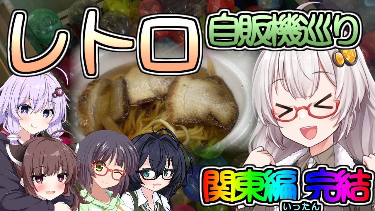 投稿時点で現存する関東のレトロ自販機のお店を全踏破した様子をVlogがてら動画にしました。<br>次は東北・北海道です!<br><br>◆動画内で紹介していた新しい「魂」、オートパーラーつるや:<br><a href="https://x.com/tsuruya_staff" target="_blank" rel="noopener nofollow">https://x.com/tsuruya_staff</a><br><br>◆動画内で紹介していた合同誌企画:<br><a href="https://x.com/saltin_0017/status/1953408703996280996" target="_blank" rel="noopener nofollow">https://x.com/saltin_0017/status/1953408703996280996</a><br><br>◆主な訪問先:<br>中古タイヤ市場 相模原店(神奈川県)<br>阿久津ベンディング(群馬県)<br>ピットイン77(群馬県)<br>オレンジハット 沖之郷店(群馬県)<br>フライングガーデン川越南古谷店(埼玉県)<br><br>◆使用した音声:<br>VOICEROID2:紲星あかり<br>VOICEPEAK:京町セイカ<br>A.I.VOICE2:結月ゆかり<br>VOICEPEAK:東北きりたん<br>VOICEPEAK:花隈千冬<br>VOICEVOX:冥鳴ひまり<br>VOICEVOX:No.7 <br>VOICEVOX:もち子さん(cv明日葉よもぎ)<br>VOICEVOX:四国めたん<br>VOICEVOX:青山龍星<br>VOICEPEAK:ずんだもん<br>VOICEVOX:雨晴はう<br>VOICEVOX:ちび式じい<br>VOICEPEAK:フリモメン<br><br>◆使用立ち絵:<br>紲星あかり<br>konnyakuさん <a href="https://seiga.nicovideo.jp/seiga/im8106524" target="_blank" rel="noopener">im8106524</a><br>京町セイカ<br>夜刀さん <a href="https://seiga.nicovideo.jp/seiga/im10664911" target="_blank" rel="noopener">im10664911</a><br>結月ゆかり&東北きりたん<br>まっくさん <a href="https://seiga.nicovideo.jp/seiga/im11467257" target="_blank" rel="noopener">im11467257</a><br>花隈千冬<br>ぴぴさん <a href="https://seiga.nicovideo.jp/seiga/im11546150" target="_blank" rel="noopener">im11546150</a><br><br>◆使用した効果音:<br>効果音ラボ<br><a href="https://soundeffect-lab.info/sound/anime/" target="_blank" rel="noopener nofollow">https://soundeffect-lab.info/sound/anime/</a><br><br>◆投稿者のTwitter:<br><a href="https://x.com/weakest_fish" target="_blank" rel="noopener nofollow">https://x.com/weakest_fish</a> (メインアカウント)<br><a href="https://x.com/wf_watermelon" target="_blank" rel="noopener nofollow">https://x.com/wf_watermelon</a> (???)