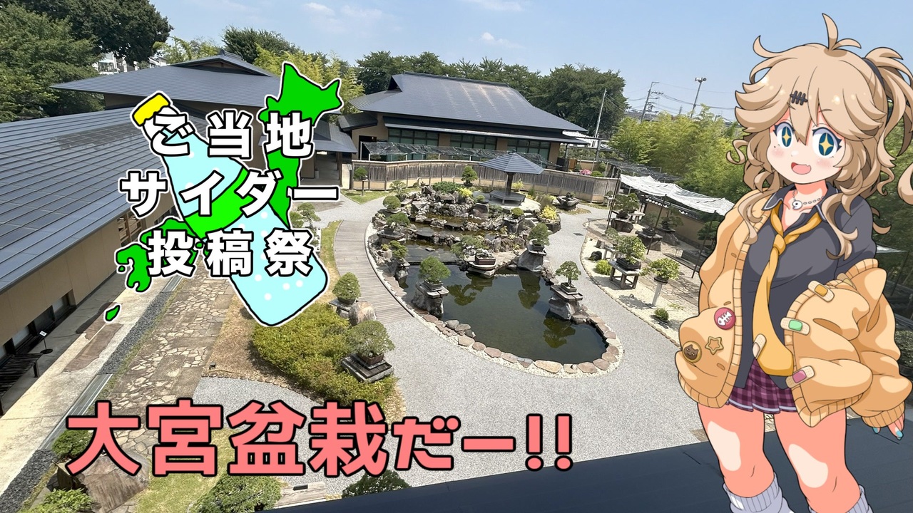 no=name(ナナシ)(<a href="https://www.nicovideo.jp/user/119196299" target="_blank" rel="noopener">user/119196299</a>)さん主催のご当地サイダー投稿祭の参加動画になります。<br><br>遅刻しました!!!!!<br><br>大宮のご当地?サイダーの「盆栽だー」と大宮盆栽美術館の紹介です。<br><br><br><br><br><br><br><br><br><br><br><br><br><br><br><br><br><br><br><br><br>動画補足?<br><br>・動画内で飲んだことがあると話したのは祖母の葬儀で出されたんで記憶に残ってたんスよね<br>・兄がTTさんなのは元看護士だからというどーでもいいネタです。ってかTTさんきゃわわ<br><br>使用ソフト<br> ・AviUtl<br> ・VoiceVox 春日部つむぎ <br> ・Voicevox ナースロボ_タイプT<br> ・Voicevox NO.7<br> ・PSDtoolkit<br> ・YukkuriMovieMaker4<br>使用フォント<br> ・しねきゃぷしょん<br> ・まるこいあすα<br>立ち絵<br> ・春日部つむぎ立ち絵【能登つくも】v1.02 能登つくも様<br> ・ちっちゃいナースロボタイプT(戦闘型)立ち絵素材 大宮祝詞様<br>素材諸々 ニコニコモンズ等<br> 撮影・編集 ユキ<br><br>