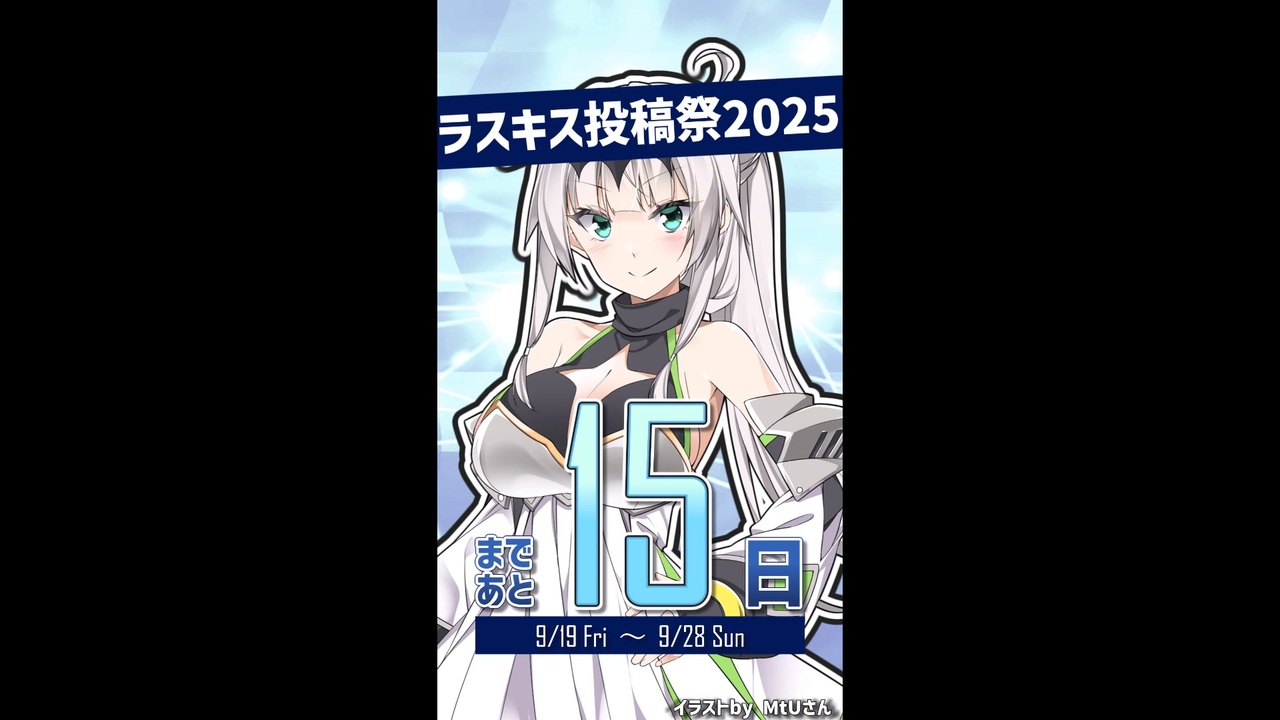 #ラスキス投稿祭2025 までのカウントダウン開始!<br>【9/19】の開催まであと15日だよ💜<br><br>■ラスキス投稿祭2025開催期間<br>2025年9月19日(金)00:00~9月28日(日)23:59<br><br>■投稿祭の詳しい説明はこちら!<br><a href="https://production.lusty-kiss.com/archives/316" target="_blank" rel="noopener nofollow">https://production.lusty-kiss.com/archives/316</a><br><br>■投稿祭に使えるロゴイラスト素材はこちら!<br><a href="https://seiga.nicovideo.jp/seiga/im11642837" target="_blank" rel="noopener nofollow">https://seiga.nicovideo.jp/seiga/im11642837</a><br>※イラスト・ロゴデザイン:サボペン様(@sabti)<br><br>◆アルマちゃん@twitter<br><a href="https://twitter.com/arma_prg" target="_blank" rel="noopener nofollow">https://twitter.com/arma_prg</a><br><br>◆Lusty*Kiss Production 公式サイト<br><a href="https://production.lusty-kiss.com/" target="_blank" rel="noopener nofollow">https://production.lusty-kiss.com/</a><br><br>◆Lusty*Kiss Production YouTubeチャンネル<br><a href="https://www.youtube.com/channel/UCfxvv69Q0j0k2Rvm8x9vEhQ" target="_blank" rel="noopener nofollow">https://www.youtube.com/channel/UCfxvv69Q0j0k2Rvm8x9vEhQ</a><br><br>◆COEIROINK 公式サイト<br><a href="https://coeiroink.com/" target="_blank" rel="noopener nofollow">https://coeiroink.com/</a><br><br>------出演------<br>クロワちゃん:クロワちゃん@COEIROINK<br><a href="https://coeiroink.com/character/audio-character/croix-p" target="_blank" rel="noopener nofollow">https://coeiroink.com/character/audio-character/croix-p</a><br><br>------立ち絵------<br>クロワちゃん立ち絵素材(MtU 様)<br><a href="https://seiga.nicovideo.jp/seiga/im11371135" target="_blank" rel="noopener nofollow">https://seiga.nicovideo.jp/seiga/im11371135</a><br><br>------使用素材 ------<br>ディアちゃんの休日<br><a href="https://commons.nicovideo.jp/material/nc266496" target="_blank" rel="noopener nofollow">https://commons.nicovideo.jp/material/nc266496</a>