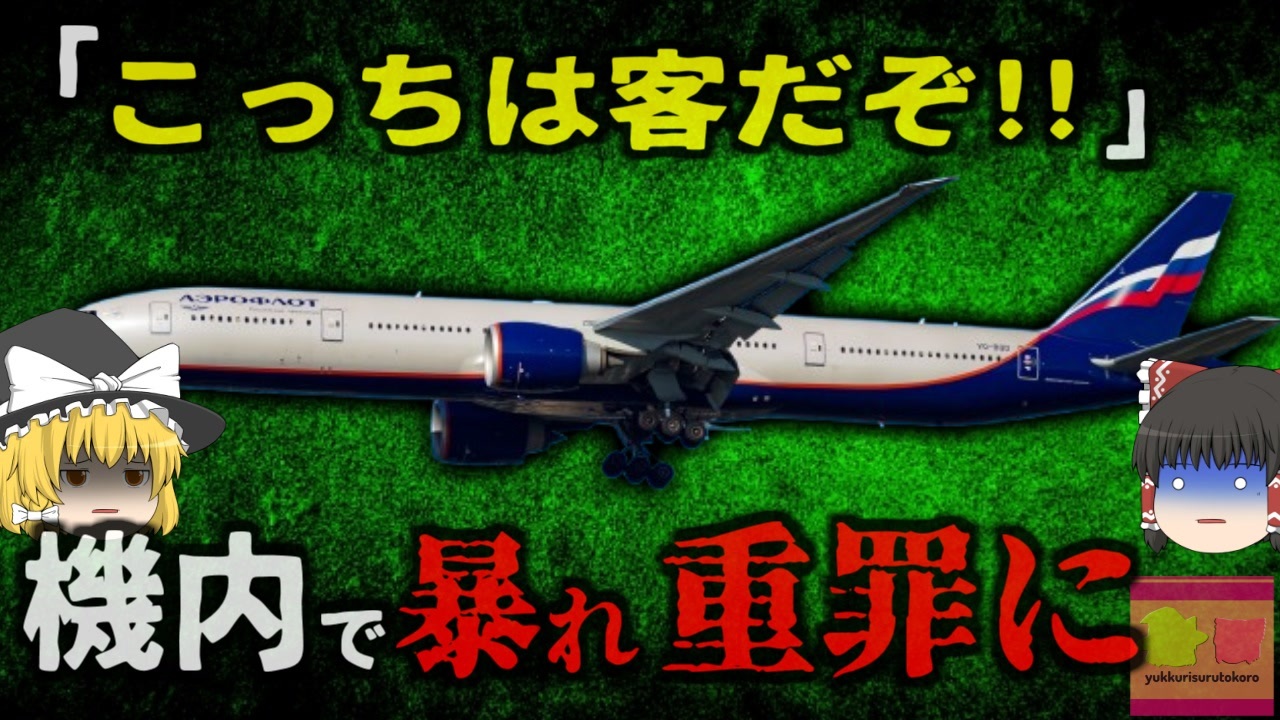 <a href="#" class="seekTime" data-seekTime="00:29" onclick="seekNicoPlayer('#00:29'); return false;">#00:29</a> ロシア航空機内で発生した事件<br><a href="#" class="seekTime" data-seekTime="1:12" onclick="seekNicoPlayer('#1:12'); return false;">#1:12</a> 乗務員に寄せられた数件の苦情<br><a href="#" class="seekTime" data-seekTime="1:34" onclick="seekNicoPlayer('#1:34'); return false;">#1:34</a> 逆上する女「A」<br><a href="#" class="seekTime" data-seekTime="2:03" onclick="seekNicoPlayer('#2:03'); return false;">#2:03</a> 録画行為に激怒した女がとった行動<br><a href="#" class="seekTime" data-seekTime="3:09" onclick="seekNicoPlayer('#3:09'); return false;">#3:09</a> 座席に拘束され警察へ<br><a href="#" class="seekTime" data-seekTime="3:40" onclick="seekNicoPlayer('#3:40'); return false;">#3:40</a> 世間の反応<br><a href="#" class="seekTime" data-seekTime="4:26" onclick="seekNicoPlayer('#4:26'); return false;">#4:26</a> 乗員の対応は適切だったかどうか<br><a href="#" class="seekTime" data-seekTime="5:32" onclick="seekNicoPlayer('#5:32'); return false;">#5:32</a> 国際基準<br><a href="#" class="seekTime" data-seekTime="6:30" onclick="seekNicoPlayer('#6:30'); return false;">#6:30</a> 彼女の行動は「重罪」<br><a href="#" class="seekTime" data-seekTime="7:50" onclick="seekNicoPlayer('#7:50'); return false;">#7:50</a> フライト遅延を起こしていればさらに高額な賠償金が<br><a href="#" class="seekTime" data-seekTime="9:01" onclick="seekNicoPlayer('#9:01'); return false;">#9:01</a> 日本でも厳しいルールがある<br><br><br>引用・出展・参考文献(視聴者提供資料など<br>FNNプライムオンライン<br><a href="https://x.gd/A6BZk" target="_blank" rel="noopener nofollow">https://x.gd/A6BZk</a><br>TOKI AIR 機内でのお願い<br><a href="https://x.gd/r07YM" target="_blank" rel="noopener nofollow">https://x.gd/r07YM</a><br>abc7<br><a href="https://abc7.com" target="_blank" rel="noopener nofollow">https://abc7.com</a><br>reddit <br><a href="https://x.gd/H1mKW" target="_blank" rel="noopener nofollow">https://x.gd/H1mKW</a><br><br><br />※この動画は過去の事件を知り、現在でも同じことが発生する危険性を再認識、関与しないように促すための動画であり、視聴者を扇動、動揺を誘うためのコンテンツではありません。<br><br>ご要望にお応えして、メンバーシップの開設を行いました。<br>下記URLからも登録可能ですので、ご興味がある方は是非ご参加ください。<br><a href="https://www.youtube.com/channel/UCcT5a1J7XJW7CLYI2RKl4pw/join" target="_blank" rel="noopener nofollow">https://www.youtube.com/channel/UCcT5a1J7XJW7CLYI2RKl4pw/join</a><br><br><br>Twitter<br>→<a href="https://twitter.com/yukkurisurutoko" target="_blank" rel="noopener nofollow">https://twitter.com/yukkurisurutoko</a><br><br>取り急ぎ、簡易的にですがマイリストを作りました。<br>【ゆっくり解説】事故・事件関係紹介リスト <br><a href="https://www.nicovideo.jp/mylist/71034319" target="_blank" rel="noopener nofollow">https://www.nicovideo.jp/mylist/71034319</a><br>【ゆっくり解説】放射線系事故<br><a href="https://www.nicovideo.jp/mylist/71034368" target="_blank" rel="noopener nofollow">https://www.nicovideo.jp/mylist/71034368</a><br>【ゆっくり解説】鉄道系事故・事件関連<br><a href="https://www.nicovideo.jp/mylist/71034379" target="_blank" rel="noopener nofollow">https://www.nicovideo.jp/mylist/71034379</a>
