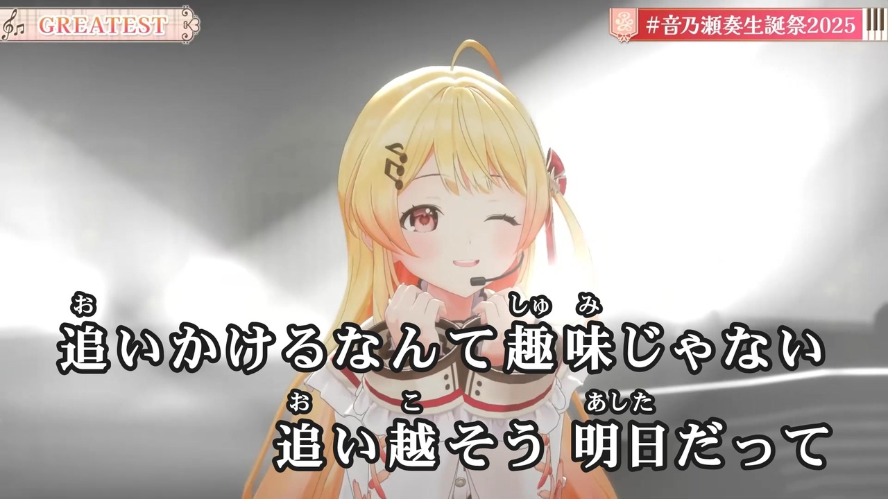 オフボーカル : <a href="https://www.nicovideo.jp/watch/sm45364712" class="watch">sm45364712</a><br><br>『GREATEST』<br><br>- Vocal<br>音乃瀬奏 (<a href="https://www.youtube.com/@OtonoseKanade" target="_blank" rel="noopener nofollow">https://www.youtube.com/@OtonoseKanade</a> / <a href="https://x.com/otonosekanade" target="_blank" rel="noopener nofollow">https://x.com/otonosekanade</a> )<br><br>- Lyric & Arrangement<br>ナナホシ管弦楽団<br><br>- Music<br>岩見陸<br><br>🎦元動画様<br>【 3D LIVE 】The First Note【 #音乃瀬奏生誕祭2025 】#hololiveDEV_IS #ReGLOSS<br><a href="https://youtu.be/mt8AyISL9Ig" target="_blank" rel="noopener nofollow">https://youtu.be/mt8AyISL9Ig</a><br><br>🔽各種配信サイト<br><a href="https://cover.lnk.to/4rvCRp" target="_blank" rel="noopener nofollow">https://cover.lnk.to/4rvCRp</a><br><br>--------------------<br><br>☆公式チャンネル関連☆<br><br>・ホロライブ公式サイト<br><a href="https://hololive.hololivepro.com" target="_blank" rel="noopener nofollow">https://hololive.hololivepro.com</a><br><br>・ホロライブ公式YouTube<br><a href="https://www.youtube.com/@hololive" target="_blank" rel="noopener nofollow">https://www.youtube.com/@hololive</a><br><br>・ホロライブ公式X<br><a href="https://x.com/hololivetv" target="_blank" rel="noopener nofollow">https://x.com/hololivetv</a><br><br>・ReGLOSS公式サイト<br><a href="https://hololive.hololivepro.com/special/9491" target="_blank" rel="noopener nofollow">https://hololive.hololivepro.com/special/9491</a><br><br>・ReGLOSS公式YouTube<br><a href="https://www.youtube.com/@hololiveDEV_IS" target="_blank" rel="noopener nofollow">https://www.youtube.com/@hololiveDEV_IS</a>