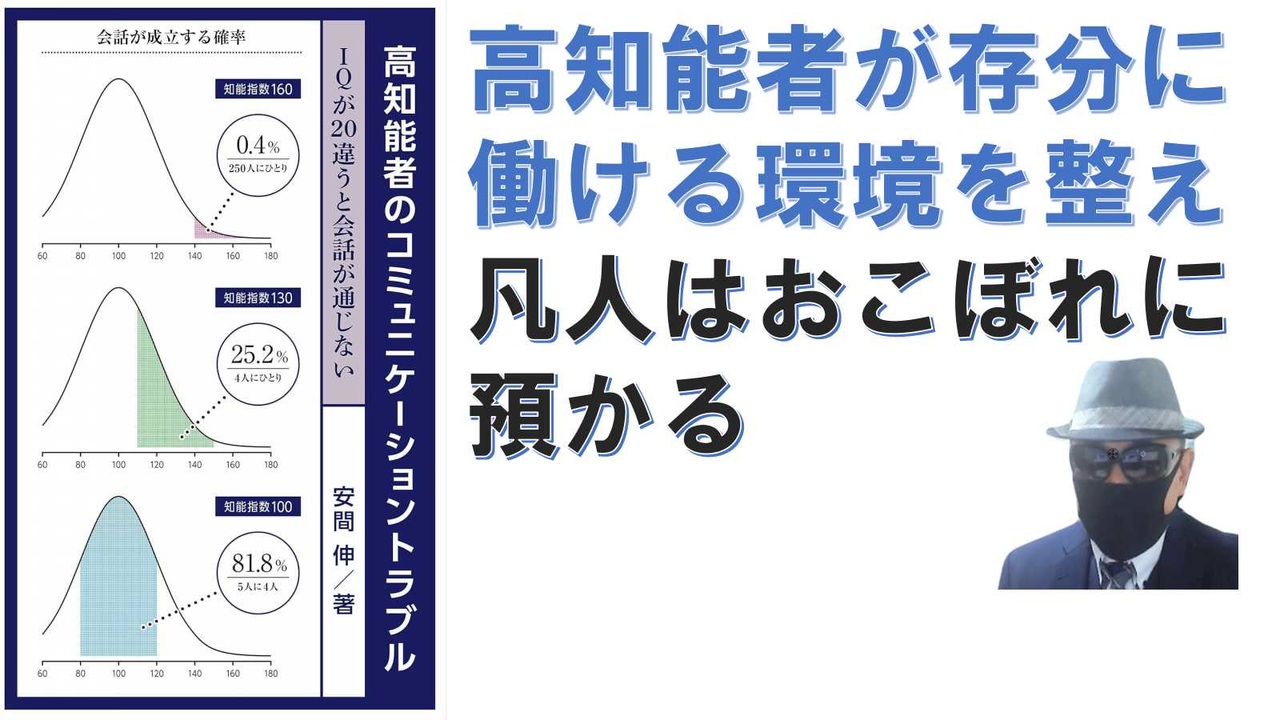 あなた一人だけが人間であとは全員チンパンジーである会社<br>餌や序列をめぐって喧嘩ばかりしている<br><br>たとえあなたの知能が相当に高くても<br>上には上がいます。<br>恐ろしく高い知能を持つ人から見れば<br>ほとんどの人はチンパンジー以下の脳みそしかな<br><br>その国の上位5%の知能が国際競争力を決め<br>彼らを理解し支援する人々に豊かな「おこぼれ」<br>がありますように⋯<br><br><br>IQ:110~130<br>現実社会でリーダーになりやすい。<br>普通の人々とのコミュもそれほど苦痛ではない。<br><br>人間に協力的な態度をとれば俺たちチンパンジーにも<br>恩恵がある。<br><br>高知能者にストレスを減らして世界の発展に役立てよう・・<br>特に不幸なケースは自分の知能が高いことを知らないまま<br>周囲から困ったちゃん扱いされている<br><br>低知能者は障害が見えやすい。<br>著者:特別な高知能者ではない<br>知恵者と友人関係が続いているので<br>それほどアホではないと類推します。<br><br><br>本当の高知能者と普通の人々の間をつなぐ通訳にはて<br>中途半端な知能<br><br>天才的な能力を持つ人は周囲に理解されないことを<br>自覚しておかなければならない。<br><br>学力はわかりやすいが<br>一般的知能や問題解決能力になると<br>能力が低い方が自覚できない。<br><br>知能の高い者同士の会話では「儀礼」「心遣い」<br>「あいまいさ」「感情」などはそぎ落とされる。<br><br>情報とアイデアが飛び交う情報通信<br>自分に対しての失礼や思いやりに欠ける発言があっても<br>気にしない。<br><br>自分の評価に自信が持てない人々は<br>まず相手の所属する会社・肩書・有名無名かどうか<br>などで相手の能力を判断する。<br><br>逆にかなり地位が高い相手に対しても<br>「さほど中身がないから話を聞く必要はない」と<br>判断することもあります。<br><br>高知能であってもコミュニケーションが苦手な人がいます<br><br>非高知能者の会話の目的は「序列の確認」<br><br>女社会は男社会以上に横並び・ふつうであることが求められる。<br>頭のよくないふりをする女の子が数多くいる。<br><br>チンパンジー社会:序列がすべて、原因究明や問題解決などには<br>興味がない。<br><br>誰のせいか、などどうでもよい。<br>知能が低すぎると能力差に気づかない<br><br><br>これまで一度も失敗していない人を「神」と<br>してあがめ、全幅の期待を寄せる<br><br>高知能者ある分野では恐ろしいほど優れているが⋯<br>日常生活はほぼ無能力者