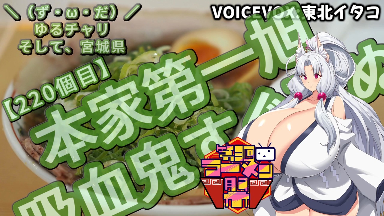ずんだを食べたりしながら宮城県をゆるチャリするだけです<br>今回はコミケの次の日の東京がメイン<br>「第三回ニコニコラーメン祭」への参加動画です<br><br>2025年08月18日(月)<br>■エコノミーホテルほていや<br><a href="https://www.hoteiebisu.com/" target="_blank" rel="noopener nofollow">https://www.hoteiebisu.com/</a><br>■東武百貨店 池袋店<br><a href="https://www.tobu-dept.jp/ikebukuro/" target="_blank" rel="noopener nofollow">https://www.tobu-dept.jp/ikebukuro/</a><br>■吸血鬼すぐ死ぬ展<br><a href="https://sugushinu10th.fundom-event.com/" target="_blank" rel="noopener nofollow">https://sugushinu10th.fundom-event.com/</a><br>■滋賀・京都・福井・大阪展<br><a href="https://www.tobu-dept.co.jp/pdf/250807.pdf" target="_blank" rel="noopener nofollow">https://www.tobu-dept.co.jp/pdf/250807.pdf</a><br>■本家第一旭<br><a href="https://www.honke-daiichiasahi.com/" target="_blank" rel="noopener nofollow">https://www.honke-daiichiasahi.com/</a><br>■宮城ふるさとプラザ<br><a href="https://cocomiyagi.jp/" target="_blank" rel="noopener nofollow">https://cocomiyagi.jp/</a><br>■そばいちニハチ<br><a href="https://www.ecute.jp/ueno/shop/5719" target="_blank" rel="noopener nofollow">https://www.ecute.jp/ueno/shop/5719</a><br>■元気フィールド仙台<br><a href="https://www.spf-sendai.jp/sisetsu/gym/genki-gym/" target="_blank" rel="noopener nofollow">https://www.spf-sendai.jp/sisetsu/gym/genki-gym/</a><br><br>AI音声・文章・音楽・画像生成利用<br><br><a target="_blank" href="https://qa.nicovideo.jp/faq/show/19424?site_domain=default" style="font-size: 13px;color: #657586; text-decoration: underline; line-height: 1.4">この動画は投稿者によって修正されました</a>