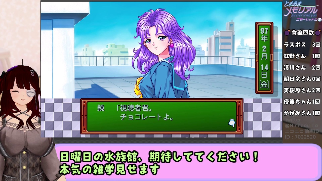 化けの皮が剝がれる <br><br>Part6→<a href="https://www.nicovideo.jp/watch/sm45325843" class="watch">sm45325843</a> <Part7ココ> Part8→<a href="https://www.nicovideo.jp/watch/sm45409684" class="watch">sm45409684</a> <br><br>ときメモマイリス→<a href="https://www.nicovideo.jp/mylist/78094350" target="_blank" rel="noopener">mylist/78094350</a><br><br>全RTAマイリスト→<a href="https://www.nicovideo.jp/mylist/69428960" target="_blank" rel="noopener">mylist/69428960</a> <br>普通実況等のPart1マイリスト→<a href="https://www.nicovideo.jp/mylist/73122841" target="_blank" rel="noopener">mylist/73122841</a><br>単発実況系マイリスト→<a href="https://www.nicovideo.jp/mylist/77398864" target="_blank" rel="noopener">mylist/77398864</a><br>収益報告系マイリスト→<a href="https://www.nicovideo.jp/mylist/77137493" target="_blank" rel="noopener">mylist/77137493</a><br><br>ーーーーーーーーーーーーーーーーーーーーーーーーーーーーーーー<br><br>ときめきメモリアル~forever with you~ エモーショナル 配信規約<br>→<a href="https://www.konami.com/games/tokimeki/1r/guideline/" target="_blank" rel="noopener nofollow">https://www.konami.com/games/tokimeki/1r/guideline/</a><br><br>ーーーーーーーーーーーーーーーーーーーーーーーーーーーーーーー<br><br>カスタムオーダーメイド3D2(COM3D2)及び<br>バーチャルアバタースタジオを使用しています。<br>今回のゆっくり以外の使用ボイス<br>→VOICEPEAK 花隈千冬