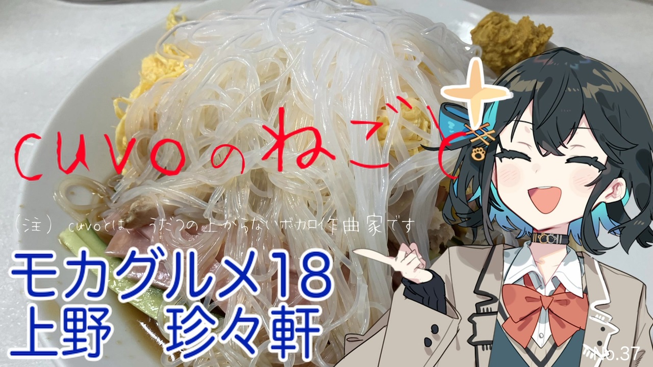 こんにちは!<br>cuvoのねごと、第37回です!<br><br>シリーズ「モカグルメ」の<br>第18弾をお届けします!<br><br>今回は上野にある<br>珍々軒に行ってきました<br><br>なんとも見た目が珍しい<br>冷やし中華を食べましたよ♪<br><br>「これが至福ってやつですかぁ!」<br><br>気になった方は、ぜひ行ってみてくださいね!<br><br>ーーーーーーー<br>▼Xで発信中!cuvoのねごと<br><a href="https://twitter.com/cuvo_jpn" target="_blank" rel="noopener nofollow">https://twitter.com/cuvo_jpn</a><br><br><br>▼エンディングテーマ<br>「飲みに行こう」<br>曲:cuvo / 詞:vie<br>歌:seven(neutrino)<br><br>↓ニコ動<br><a href="https://nico.ms/sm41946436" target="_blank" rel="noopener nofollow">https://nico.ms/sm41946436</a><br><br>↓YouTube<br><a href="https://youtu.be/aJWyRuT7cGk" target="_blank" rel="noopener nofollow">https://youtu.be/aJWyRuT7cGk</a><br><br>ーーーーーーーーーーーーーーーーー<br><br />ニコニコ動画(cuvo:ボカロ曲)<br><a href="https://www.nicovideo.jp/user/123099454/video" target="_blank" rel="noopener nofollow">https://www.nicovideo.jp/user/123099454/video</a><br><br>YouTube<br><a href="https://www.youtube.com/channel/UCeyFWGAsM1u0r7XpT0yeDPA/" target="_blank" rel="noopener nofollow">https://www.youtube.com/channel/UCeyFWGAsM1u0r7XpT0yeDPA/</a><br><br>X(旧Twitter)<br><a href="https://twitter.com/cuvo_jpn" target="_blank" rel="noopener nofollow">https://twitter.com/cuvo_jpn</a><br><br>Instagram<br><a href="https://www.instagram.com/cuvo_jpn/" target="_blank" rel="noopener nofollow">https://www.instagram.com/cuvo_jpn/</a>
