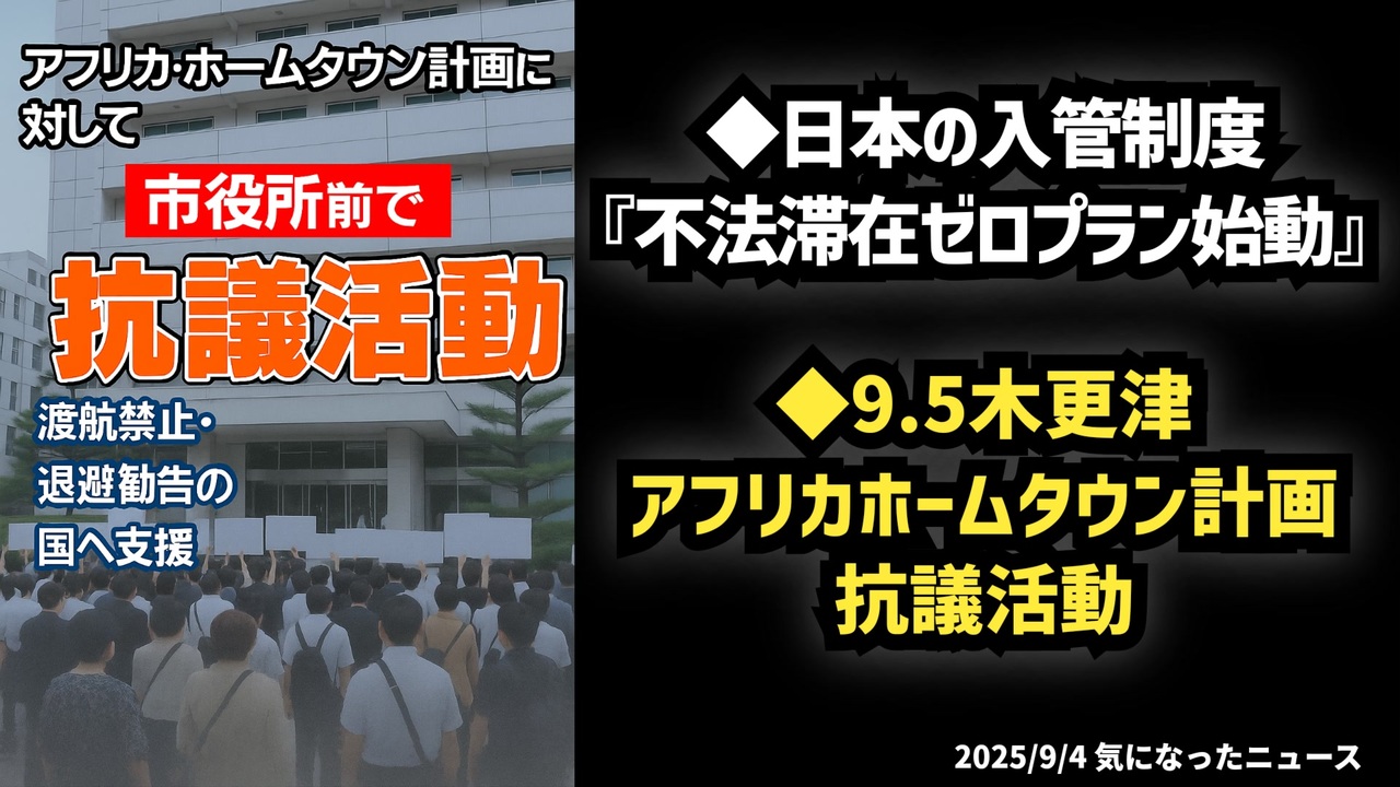 ◆日本の入管制度『不法滞在ゼロプラン始動』◆9.5木更津アフリカホームタウン計画抗議活動 外国人受け入れは転換点に<br><br>日本の入管制度に、大きな変化の動きが出ています。経営管理ビザの資本金要件引き上げや技能実習制度の廃止など、外国人の受け入れ方針が見直されようとしています。一方、千葉県木更津市では、国際協力機構JICAが関わる「アフリカ・ホームタウン計画」をめぐり、地元で抗議と周知活動が予定されています。制度改正と地域の動きは、日本社会にどのような影響を及ぼすのでしょうか。今回の動画では、最新の事実を整理し、わかりやすくお伝えします。<br><br>◆今回の台本<a href="https://keiichiro8140.hatenablog.com/entry/250904444888999" target="_blank" rel="noopener nofollow">https://keiichiro8140.hatenablog.com/entry/250904444888999</a><br><br>新チャンネルで再出発! 登録よろしくお願いします┏○)) <a href="https://www.youtube.com/@K16news888" target="_blank" rel="noopener nofollow">https://www.youtube.com/@K16news888</a><br><br>◆もしも(BAN)の時のためのマイリンク集<a href="https://lit.link/K16_888" target="_blank" rel="noopener nofollow">https://lit.link/K16_888</a><br><br>ご覧いただきありがとうございます<br>m(_ _)m<br>気になったニュース 2025/9/4<br><br />著作権、肖像権に配慮して作成しております。<br><br>◆気になったニュースの台本!?<br>メモ代わりに作った台本をそのままあげてます<br><a href="https://keiichiro8140.hatenablog.com/." target="_blank" rel="noopener nofollow">https://keiichiro8140.hatenablog.com/.</a><br><br><br>ここからはシリーズ紹介<br><br><br>◆ ワクチン解毒・デトックス<br><a href="https://x.gd/fZweg" target="_blank" rel="noopener nofollow">https://x.gd/fZweg</a><br><br>◆ウイリアム・マキス博士のがん治療(イベルメクチン・フェンベンダゾール等)<br><a href="https://x.gd/AtFYS" target="_blank" rel="noopener nofollow">https://x.gd/AtFYS</a><br><br>◆予防接種健康被害救済制度<br><a href="https://x.gd/0xK9x" target="_blank" rel="noopener nofollow">https://x.gd/0xK9x</a><br><br>◆気になったニュース #1501~<br><br>◆ 【ショートver】気になったニュース<br><a href="https://x.gd/7MxXC" target="_blank" rel="noopener nofollow">https://x.gd/7MxXC</a><br><br>◆ 気になったニュース #1001~<br><a href="https://x.gd/Lp8gv" target="_blank" rel="noopener nofollow">https://x.gd/Lp8gv</a><br><br>◆ 気になったニュース #501~<br><a href="https://x.gd/EmbS4" target="_blank" rel="noopener nofollow">https://x.gd/EmbS4</a><br><br>◆ 気になったニュース #1~#500<br><a href="https://x.gd/uPhNb" target="_blank" rel="noopener nofollow">https://x.gd/uPhNb</a><br><br>◆ X(旧Twitter)・テレグラムで気になった情報<br><a href="https://x.gd/YG6FT" target="_blank" rel="noopener nofollow">https://x.gd/YG6FT</a><br><br>◆ 日比谷5万人パレードデ⚪生放送アーカイブ動画<br><a href="https://x.gd/3CHJv" target="_blank" rel="noopener nofollow">https://x.gd/3CHJv</a><br><br>◆日比谷5万人パレード⚪モのマイリスト作ってみました<br><a href="https://nico.ms/mylist/76828848?ref=sp_other" target="_blank" rel="noopener nofollow">https://nico.ms/mylist/76828848?ref=sp_other</a><br><br>◆3.30 令和の百姓⚪⚪<br><a href="https://www.nicovideo.jp/series/511791?ref=garage_share_other" target="_blank" rel="noopener nofollow">https://www.nicovideo.jp/series/511791?ref=garage_share_other</a><br><br>◆ 及川幸久さんの【XNEWS】シリーズ<br><a href="https://x.gd/3k78K" target="_blank" rel="noopener nofollow">https://x.gd/3k78K</a><br><br>◆これまでの動画<a href="https://x.gd/sPXoJ" target="_blank" rel="noopener nofollow">https://x.gd/sPXoJ</a><br><br>◆もしも(BAN)の時のためのマイリンク集<a href="https://lit.link/K-16_News44" target="_blank" rel="noopener nofollow">https://lit.link/K-16_News44</a><br><br>