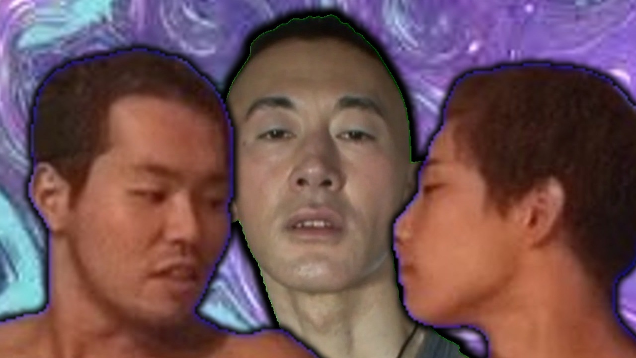 百合の間に挟まる青年アキラ