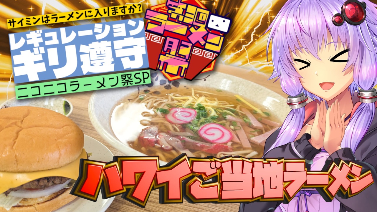 もしハワイに来た際、ワイキキ周辺で手軽にサイミンを食べたくなったらレインボー・ドライブインというお店ならミニサイズのサイミンがあるのでおすすめです。<br><br>今回行ったお店 - Shige's Saimin Stand: <a href="https://maps.app.goo.gl/rAvnN9oQjCG8aeqVA" target="_blank" rel="noopener nofollow">https://maps.app.goo.gl/rAvnN9oQjCG8aeqVA</a><br><br>前:<a href="https://www.nicovideo.jp/watch/sm45352337" class="watch">sm45352337</a> ハナウマベイでシュノーケリング<br>次:<a href="https://www.nicovideo.jp/watch/sm45464099" class="watch">sm45464099</a> めっちゃ美味しいベルギービールをステーキと一緒にいただきました<br>Twitter:<a href="https://x.com/TakaFromHawaii" target="_blank" rel="noopener nofollow">https://x.com/TakaFromHawaii</a><br>使用したBGM:<a href="https://mozeen.stores.jp/" target="_blank" rel="noopener nofollow">https://mozeen.stores.jp/</a><br>効果音:<a href="https://soundeffect-lab.info/" target="_blank" rel="noopener nofollow">https://soundeffect-lab.info/</a> <a href="https://otologic.jp/" target="_blank" rel="noopener nofollow">https://otologic.jp/</a> <br>ゆかりさんの立ち絵は不二乃ユウキ先生に個人的に依頼して描いていただいたものです。<br>