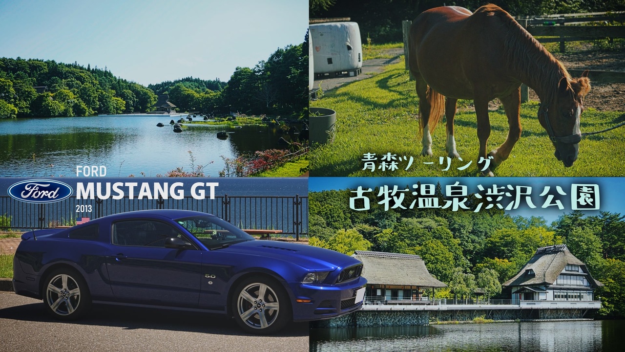 忘れた頃に、ひっそりと。約3か月ぶりの投稿です・・・。(小声)<br><br>去る7/20に我がマスタングはめでたく納車1年を迎えました。<br>おかげさまでこれまで特に大きなトラブルや事故等無く、元気いっぱいに走り続けてくれています。<br><br>さて、今回はそんな「野生馬」に乗って馬に会いに行く動画です。<br>真夏の夏泊半島をスタートし、三沢市と六戸町にまたがる「古牧温泉渋沢公園」を目指します。<br><br>この時期らしい爽やかで美しい陸奥湾の景色を堪能しつつ、交通量の少ないのどかな田舎道を、<br>心地よいV8サウンドを響かせたマスタングで駆け抜けます。<br><br>広大な公園内に広がる豊かな自然と可愛らしい馬たちに癒されました。<br><br> ●マスタング動画<br>角田市お花見ツーリング:<a href="https://www.nicovideo.jp/watch/sm44994589" class="watch">sm44994589</a><br>青森のレトロな町並み散策:<a href="https://www.nicovideo.jp/watch/sm45061649" class="watch">sm45061649</a><br><br>●X(旧twitter) <br><a href="https://twitter.com/tecchann911" target="_blank" rel="noopener nofollow">https://twitter.com/tecchann911</a>
