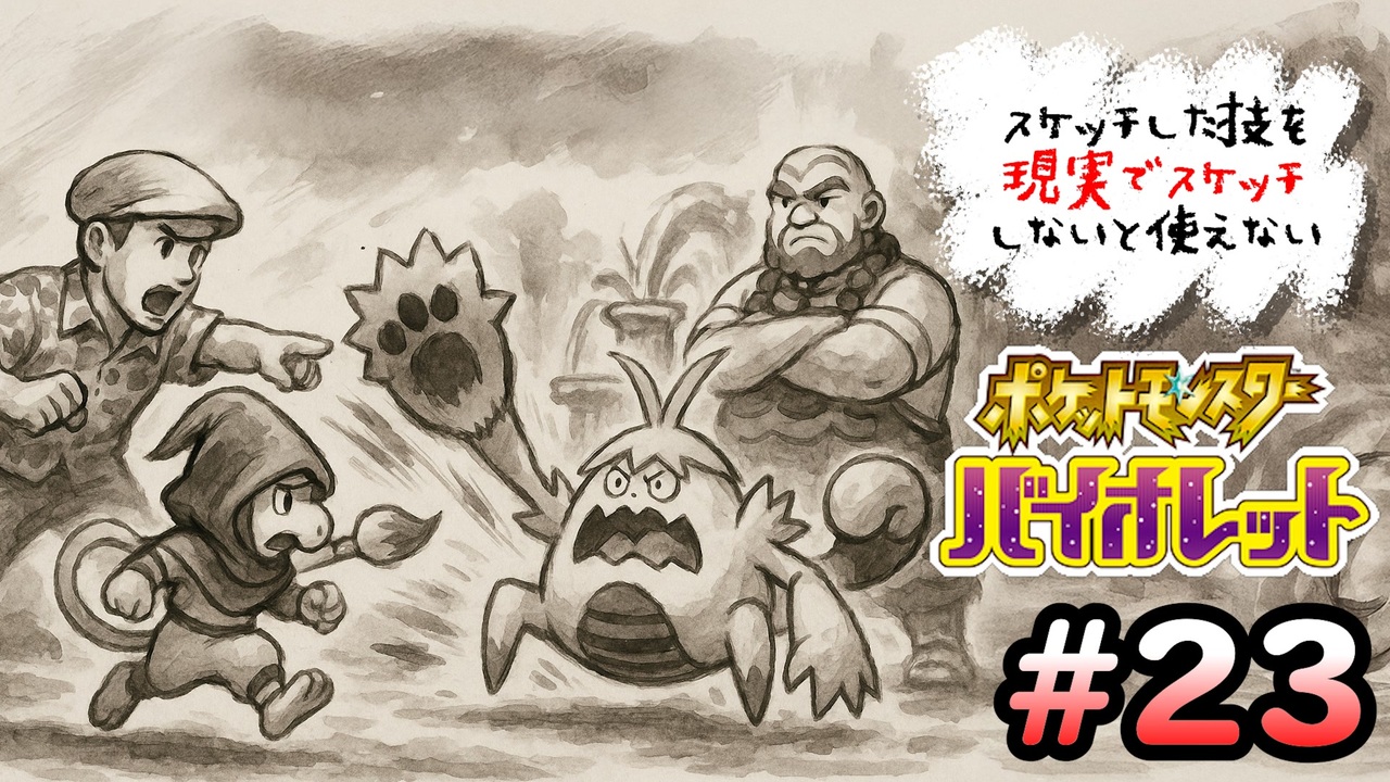 <strong>〇〇を持ってたら負けの戦い、始まる。<br><br>【次】下のシリーズ欄から飛んでね<br>【投稿動画まとめ】 <a href="https://www.nicovideo.jp/mylist/32090282" target="_blank" rel="noopener">mylist/32090282</a></strong><br><br><span style="color: #ff0000; font-size: 10px;"><strong>~ルール~</strong></span><br><span style="font-size: 10px;">・基本はドーブル1体(要所では3体)で戦っていく<br>・スケッチした技は現実でスケッチし、AIが当てたら使える<br>判定できる回数は技のPPの10の桁の数+1回<br>→回数内に成功しなかったら、その技は使用禁止技リスト入り<br>→成功したら使えるが、PPを増やす・回復は禁止(強制イベントを除く)<br>・一度でも忘れた技は禁止技リスト入り<br>・戦闘に負けたら覚えている技を全忘れ<br>・スケッチのみ全ての例外とする<br>・へんしん、ゆびをふる等を使い「更に変化した技」はスケッチせず使える<br>・ルール違反に気付いたらセーブ地点まで戻る<br>※もし気付かずに進んでセーブした場合など、その地点より前に戻れなければゲームを最初からやり直す<br>・抜け道が見つかったら都度縛り、進行に不可欠なものがあれば例外化する<br>・詰んだら使用禁止リストを初期化して最初から</span><br><br><span style="color: #0000ff; font-size: 10px;"><strong>禁止行為</strong></span><br><span style="font-size: 10px;">・逃げる行為<br>・アメ、ポケモン捕獲、レッツゴー、ピクニック、など技を使わず経験値を得る行為(非戦闘要員ドーブルのピクニックは可)<br>・イベント戦以外で故意に敵の自滅を待つ<br>・食事パワーの利用(遭遇パワーのみ可)<br>・戦闘用バフアイテムの使用<br>・通信対戦、協力、交換の類<br>・ソフトリセット(起きた事をなかった事にする行為)<br>・故意に別のポケモンや技を描く<br>・過去に別の技の判定で使った絵の再利用<br>・覚えてる技がスケッチのみの状態で 負けたポケモンへのスケッチ or 自分からトレーナーやヌシ戦を行う</span><br><br><span style="color: #6aa84f;"><strong>▼投稿者情報▼</strong></span><br>【 X 】<a href="https://x.com/wakou2525" target="_blank" rel="noopener nofollow">https://x.com/wakou2525</a><br>【意見・連絡先】wakou2525otayori@yahoo.co.jp