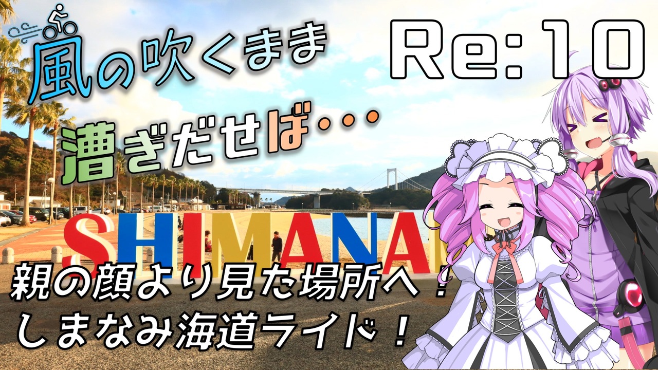 結月ゆかりロードバイク車載動画です。<br><br>今回は帰省の途中にしまなみ海道へサイクリングに行った様子をお伝えいたします!<br><br>GTRを納車して5年、いつかいつかと思っていた聖地へついに赴くことができました!<br>年の瀬の寒空の下ではありますが、前日の尾道も含めて楽しませてもらいました!<br><br>お楽しみいただけますと幸いです。<br><br>立ち絵<br>あずかず様<br>どどマヨ様 ( <a href="https://seiga.nicovideo.jp/seiga/im5518180" target="_blank" rel="noopener nofollow">https://seiga.nicovideo.jp/seiga/im5518180</a> )<br>moiky様 ( <a href="https://ux.getuploader.com/moiky01/download/61" target="_blank" rel="noopener nofollow">https://ux.getuploader.com/moiky01/download/61</a> )<br><br>使用BGM<br>Spicy or spacy (アマガミSSより)<br>なでしこ (ゆるキャン△ Season 2より)<br>ろんぐらいだぁす! (ろんぐらいだぁす!より)<br>はじめての輪行 (ろんぐらいだぁす!より)<br>かいぞくじま (ディディーコングレーシングより)<br>ともしび ( <a href="https://commons.nicovideo.jp/material/nc143129" target="_blank" rel="noopener nofollow">https://commons.nicovideo.jp/material/nc143129</a> )<br>コーラルリーフ ( <a href="https://bgmer.net/music/246" target="_blank" rel="noopener nofollow">https://bgmer.net/music/246</a> )<br>しょーもないおしゃべり (ゆるキャン△ Season2より)<br>風来旅行 ( <a href="https://bgmer.net/music/247" target="_blank" rel="noopener nofollow">https://bgmer.net/music/247</a> )<br>冬空のミュージック ( <a href="https://soundcloud.com/baron1_3/fuyuzora" target="_blank" rel="noopener nofollow">https://soundcloud.com/baron1_3/fuyuzora</a> )<br>虹の根元まで ( <a href="https://bgmer.net/music/249" target="_blank" rel="noopener nofollow">https://bgmer.net/music/249</a> )<br>やさしさに包まれたなら(坂本真綾 / たまゆらより)