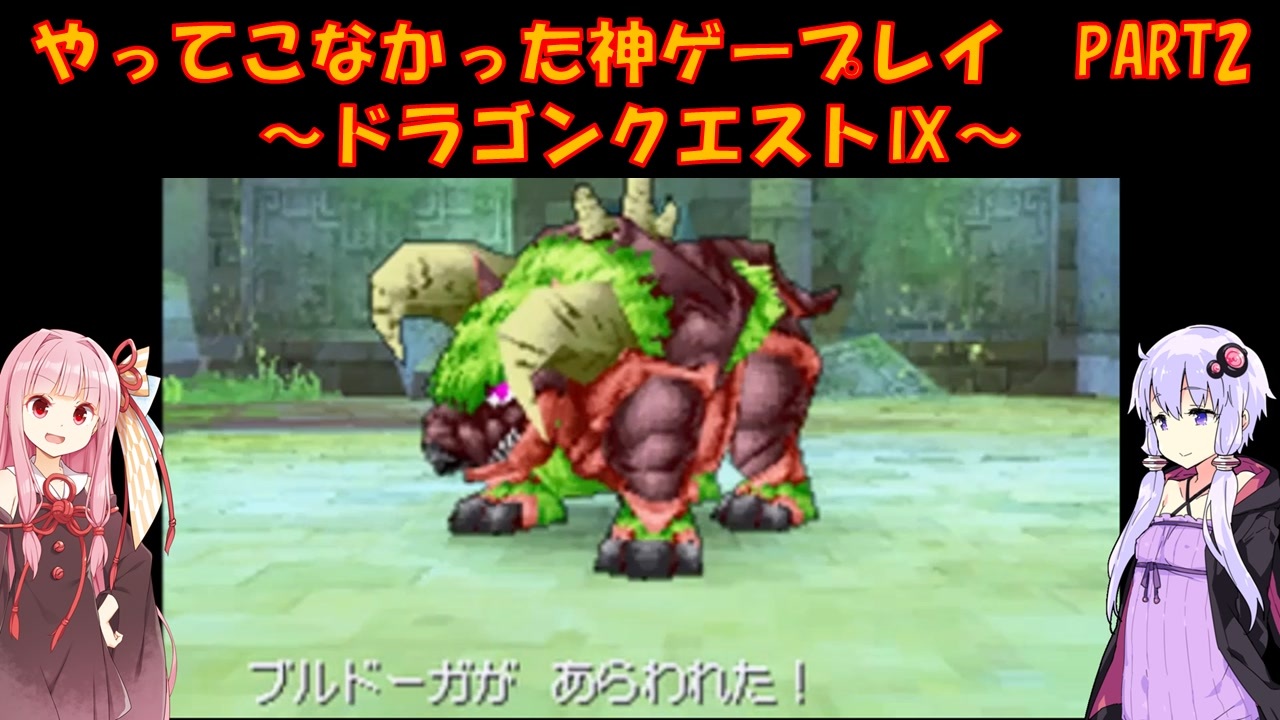 ニンテンドーDS ドラゴンクエストⅨをプレイ<br>ゆかりさんはメジャーじゃないゲームをやる俺カッケー族だったのでドラクエをやったことがありませんでした(DSのⅤ以外)<br><br>茜:とっても強そう<br>ゆ:キングベヒんもス感ある<br><br>PART1:<a href="https://www.nicovideo.jp/watch/sm45383595" target="_blank" rel="noopener nofollow">https://www.nicovideo.jp/watch/sm45383595</a><br><br>各DQシリーズ再生リスト<br><a href="https://garage.nicovideo.jp/niconico-garage/video/series/390298" target="_blank" rel="noopener nofollow">https://garage.nicovideo.jp/niconico-garage/video/series/390298</a><br><br>動画内で使用させていただいた素材<br>【イラスト】<br>結月ゆかり→ペテン師様:<a href="https://seiga.nicovideo.jp/seiga/im5494168" target="_blank" rel="noopener nofollow">https://seiga.nicovideo.jp/seiga/im5494168</a><br>琴葉茜→ユメのオワリ様:<a href="https://seiga.nicovideo.jp/seiga/im10706241" target="_blank" rel="noopener nofollow">https://seiga.nicovideo.jp/seiga/im10706241</a><br><br>【音声】<br>A.I.Voice:琴葉茜<br><a href="https://aivoice.jp/product/kotonoha/" target="_blank" rel="noopener nofollow">https://aivoice.jp/product/kotonoha/</a><br><br>A.I.Voice:結月ゆかり<br><a href="https://aivoice.jp/product/yukari/" target="_blank" rel="noopener nofollow">https://aivoice.jp/product/yukari/</a><br><br>【その他素材】<br><br>この動画で利用している株式会社スクウェア・エニックスを代表とする共同著作者が権利を所有する著作物及びスギヤマ工房有限会社が権利を所有する楽曲の転載・配布は禁止いたします。<br>© 2009 ARMOR PROJECT/BIRD STUDIO/LEVEL-5/SQUARE ENIX All Rights Reserved.<br>© SUGIYAMA KOBO<br>Ⓟ SUGIYAMA KOBO