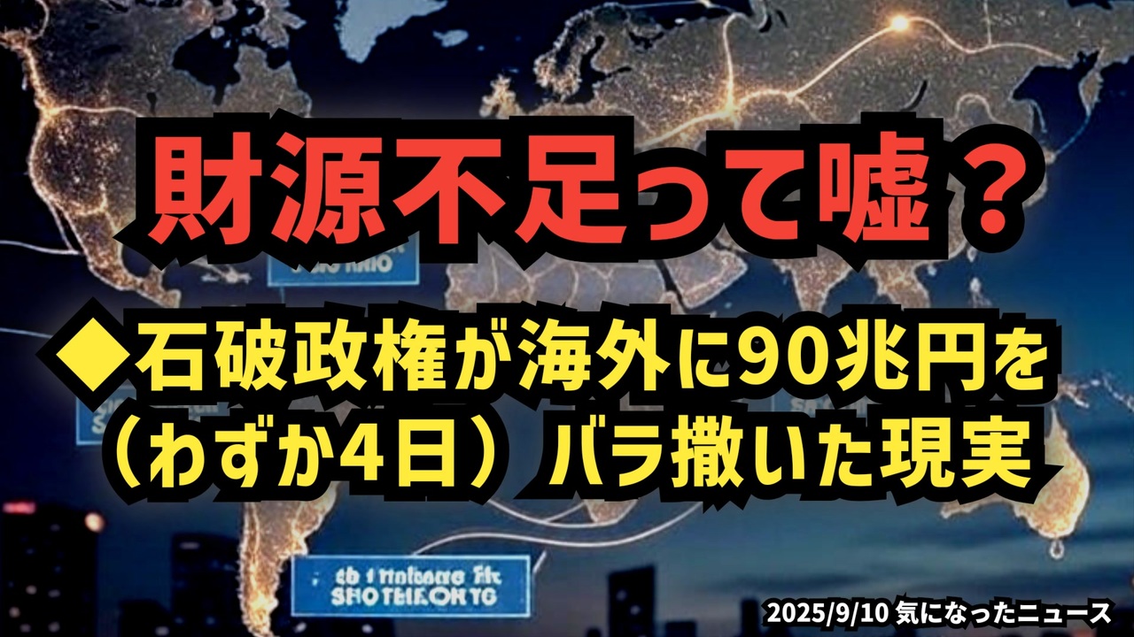 【財源不足って嘘?】◆石破政権が海外に90兆円を(わずか4日で)バラ撒いた現実<br><br>あらすじ<br>石破政権が直近で行った海外支出は、アメリカに約80兆円、ビル・ゲイツ氏関連に810億円、アフリカに2,200億円、インドに10兆円。合計でおよそ90兆円規模にのぼるとされています。<br>一方で、国民一律2万円の給付すら見送られ、「財源がない」と繰り返されてきました。物価上昇や生活費の負担が重くなるなかで、なぜ海外には巨額の資金が流れていくのか。その説明は十分とは言えません。<br>さらに「アフリカホームタウン計画」など、海外支援と外国人受け入れが結びつく政策も進められています。治安悪化や不起訴事例への懸念もある中で、日本の税金が誰のために使われているのか、改めて問い直す必要があります。<br><br>◆今回の台本<a href="https://keiichiro8140.hatenablog.com/entry/25091000222" target="_blank" rel="noopener nofollow">https://keiichiro8140.hatenablog.com/entry/25091000222</a><br><br>◆新チャンネルで再出発! 登録よろしくお願いします┏○)) <a href="https://www.youtube.com/@K16news888" target="_blank" rel="noopener nofollow">https://www.youtube.com/@K16news888</a><br><br>◆もしも(BAN)の時のためのマイリンク集<a href="https://lit.link/K16_888" target="_blank" rel="noopener nofollow">https://lit.link/K16_888</a><br><br>ご覧いただきありがとうございます<br>m(_ _)m<br>気になったニュース 2025/9/10<br><br />著作権、肖像権に配慮して作成しております。<br><br>◆気になったニュースの台本!?<br>メモ代わりに作った台本をそのままあげてます<br><a href="https://keiichiro8140.hatenablog.com/." target="_blank" rel="noopener nofollow">https://keiichiro8140.hatenablog.com/.</a><br><br><br>ここからはシリーズ紹介<br><br><br>◆ ワクチン解毒・デトックス<br><a href="https://x.gd/fZweg" target="_blank" rel="noopener nofollow">https://x.gd/fZweg</a><br><br>◆ウイリアム・マキス博士のがん治療(イベルメクチン・フェンベンダゾール等)<br><a href="https://x.gd/AtFYS" target="_blank" rel="noopener nofollow">https://x.gd/AtFYS</a><br><br>◆予防接種健康被害救済制度<br><a href="https://x.gd/0xK9x" target="_blank" rel="noopener nofollow">https://x.gd/0xK9x</a><br><br>◆気になったニュース #1501~<br><br>◆ 【ショートver】気になったニュース<br><a href="https://x.gd/7MxXC" target="_blank" rel="noopener nofollow">https://x.gd/7MxXC</a><br><br>◆ 気になったニュース #1001~<br><a href="https://x.gd/Lp8gv" target="_blank" rel="noopener nofollow">https://x.gd/Lp8gv</a><br><br>◆ 気になったニュース #501~<br><a href="https://x.gd/EmbS4" target="_blank" rel="noopener nofollow">https://x.gd/EmbS4</a><br><br>◆ 気になったニュース #1~#500<br><a href="https://x.gd/uPhNb" target="_blank" rel="noopener nofollow">https://x.gd/uPhNb</a><br><br>◆ X(旧Twitter)・テレグラムで気になった情報<br><a href="https://x.gd/YG6FT" target="_blank" rel="noopener nofollow">https://x.gd/YG6FT</a><br><br>◆ 日比谷5万人パレードデ⚪生放送アーカイブ動画<br><a href="https://x.gd/3CHJv" target="_blank" rel="noopener nofollow">https://x.gd/3CHJv</a><br><br>◆日比谷5万人パレード⚪モのマイリスト作ってみました<br><a href="https://nico.ms/mylist/76828848?ref=sp_other" target="_blank" rel="noopener nofollow">https://nico.ms/mylist/76828848?ref=sp_other</a><br><br>◆3.30 令和の百姓⚪⚪<br><a href="https://www.nicovideo.jp/series/511791?ref=garage_share_other" target="_blank" rel="noopener nofollow">https://www.nicovideo.jp/series/511791?ref=garage_share_other</a><br><br>◆ 及川幸久さんの【XNEWS】シリーズ<br><a href="https://x.gd/3k78K" target="_blank" rel="noopener nofollow">https://x.gd/3k78K</a><br><br>◆これまでの動画<a href="https://x.gd/sPXoJ" target="_blank" rel="noopener nofollow">https://x.gd/sPXoJ</a><br><br>◆もしも(BAN)の時のためのマイリンク集<a href="https://lit.link/K-16_News44" target="_blank" rel="noopener nofollow">https://lit.link/K-16_News44</a><br><br>