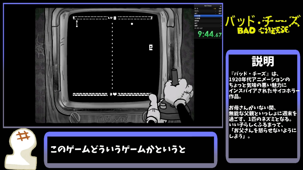 販売サイト→<a href="https://store.steampowered.com/app/3094480/_/" target="_blank" rel="noopener nofollow">https://store.steampowered.com/app/3094480/_/</a><br><br>今回は「バッド・チーズ」を遊びました<br>いい子や;;<br><br><span style="color: #000000; font-size: 14px;">単発RTA→</span><span style="color: #006699; font-size: 14px;"><a href="https://www.nicovideo.jp/mylist/66917940" target="_blank" rel="noopener">mylist/66917940</a></span><br><br>生放送コミュ→co4338697<br><br><span style="color: #000000; font-size: 14px;">ΔYoutube→</span><span style="color: #006699; font-size: 14px;"><a href="https://www.youtube.com/channel/UC4jVPBw6dP3mXCGJvRi3Xbw?view_as=subscriber" target="_blank" rel="noopener nofollow">https://www.youtube.com/channel/UC4jVPBw6dP3mXCGJvRi3Xbw?view_as=subscriber</a></span>