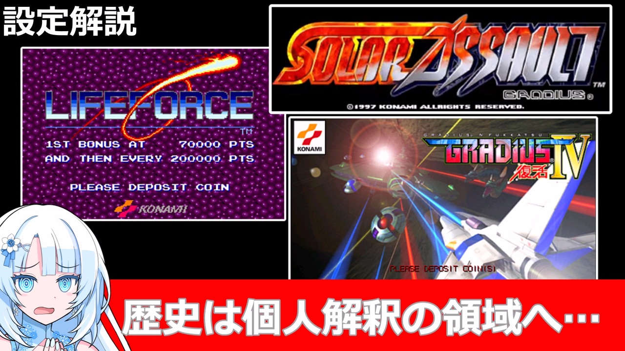 ゲームのバックストーリーを解説する動画です。<br>今回はライフフォース、グラディウスIV、ソーラーアサルトの3本です。<br>バクテリアンを倒しても戦いは続きます。<br><br>次(沙羅曼蛇2):<a href="https://www.nicovideo.jp/watch/sm45409977" class="watch">sm45409977</a><br><br>グラディウスオリジンコレクション発売中<br><a href="https://store.steampowered.com/app/2897590/_/?l=japanese" target="_blank" rel="noopener nofollow">https://store.steampowered.com/app/2897590/_/?l=japanese</a><br /><br><br>■RTA・制限プレイpart1集<br><a href="https://www.nicovideo.jp/mylist/77257226" target="_blank" rel="noopener">mylist/77257226</a><br><br>■ゲームバックストーリー集<br><a href="https://www.nicovideo.jp/mylist/77257232" target="_blank" rel="noopener">mylist/77257232</a><br><br>■音楽BGM集<br><a href="https://www.nicovideo.jp/mylist/78040306" target="_blank" rel="noopener">mylist/78040306</a><br><br>形だけX始めました<br><a href="https://x.com/gurigurigaaa" target="_blank" rel="noopener nofollow">https://x.com/gurigurigaaa</a><br><br><a target="_blank" href="https://qa.nicovideo.jp/faq/show/19424?site_domain=default" style="font-size: 13px;color: #657586; text-decoration: underline; line-height: 1.4">この動画は投稿者によって修正されました</a>