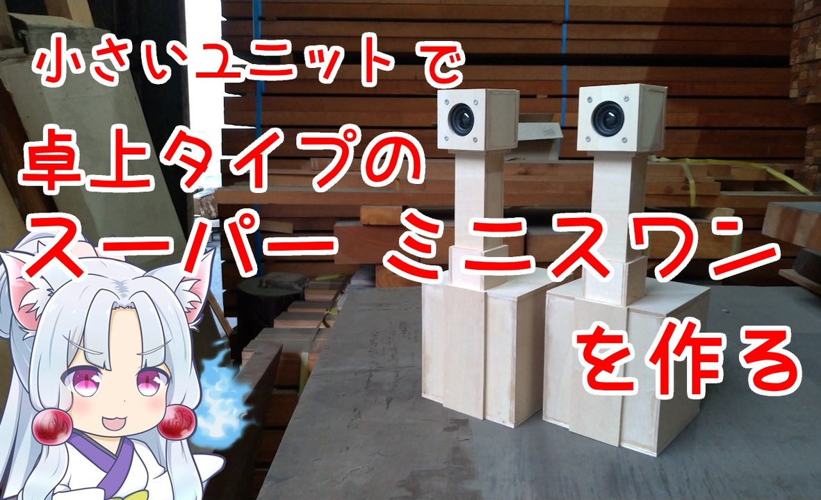 今回は、長岡鉄男先生が設計したスーパースワンを卓上サイズに縮小して作ってみました。<br>その名も スーパーミニスワン<br>果たしてどんな音で鳴るのか!?<br><br>気になるユニットは秋月電子通商さんで売っていた220円の4㎝ユニットです。<br>店頭やネットで見たことがあって気になっている方もいらっしゃるのではないでしょうか?<br><br>今まで私が使ってきたのは1個あたり150円のダイソーのユニット。<br>価格と音質が比例するオーディオ業界<br>ダイソーより高いユニットはやっぱり音が良いのか!?<br><br>↓つべ<br><a href="https://www.youtube.com/@aiharanoki" target="_blank" rel="noopener nofollow">https://www.youtube.com/@aiharanoki</a><br><br><br>◆今回の動画で使用したもの<br>・5.5㎜のシナ合板<br>・ダイソー300円スピーカー<br>・秋月電子通商さんで買ってきたユニット<br>・中華アンプLPV3S<br><a href="https://amzn.to/4ak57U8" target="_blank" rel="noopener nofollow">https://amzn.to/4ak57U8</a><br>・↑のアダプター<br><a href="https://amzn.to/3RpFUPh" target="_blank" rel="noopener nofollow">https://amzn.to/3RpFUPh</a><br><br><br>オススメ工具<br>・ちょっと下穴ビット <a href="https://amzn.to/47AWxz3" target="_blank" rel="noopener nofollow">https://amzn.to/47AWxz3</a><br>・はんだごてgoot PX-280 <a href="https://amzn.to/41l7bbK" target="_blank" rel="noopener nofollow">https://amzn.to/41l7bbK</a><br><br><br>※オーディオ、スピーカーに対する考え方。<br>私は高級な機材を揃えて音を嗜むオーディオマニアではありません。<br>できるだけ手軽に、自分好みのいい音を作りたいエンジョイ勢です。<br><br><br>◆参考にさせて頂いています。<br><br>・DIYサウンド様<br><a href="http://www.diy-sound.net/bassref_calc.html" target="_blank" rel="noopener nofollow">http://www.diy-sound.net/bassref_calc.html</a><br>・長岡鉄男さんの<br>「世界にただひとつ 自分だけの手作りスピーカーを作る」<br><a href="https://amzn.to/3w7x4d4" target="_blank" rel="noopener nofollow">https://amzn.to/3w7x4d4</a><br>・「長岡鉄男のわけのわかるオーディオ」<br><a href="https://amzn.to/3fusCQ5" target="_blank" rel="noopener nofollow">https://amzn.to/3fusCQ5</a><br>・長岡鉄男のスピーカー工作全図面集<br><a href="https://amzn.to/3RFRJ5t" target="_blank" rel="noopener nofollow">https://amzn.to/3RFRJ5t</a><br>・コメントを頂ける皆様<br><br> <br><br>◆X↓<br><a href="https://twitter.com/aiharanoki1" target="_blank" rel="noopener nofollow">https://twitter.com/aiharanoki1</a><br><br>◆使用音源<br>・Cosmic_Mini<br>・星屑サラウンド<br><br>◆立ち絵<br>・ESTさんの立ち絵を使わせていただいています。<br><a href="https://www.nicovideo.jp/user/282985" target="_blank" rel="noopener nofollow">https://www.nicovideo.jp/user/282985</a><br>
