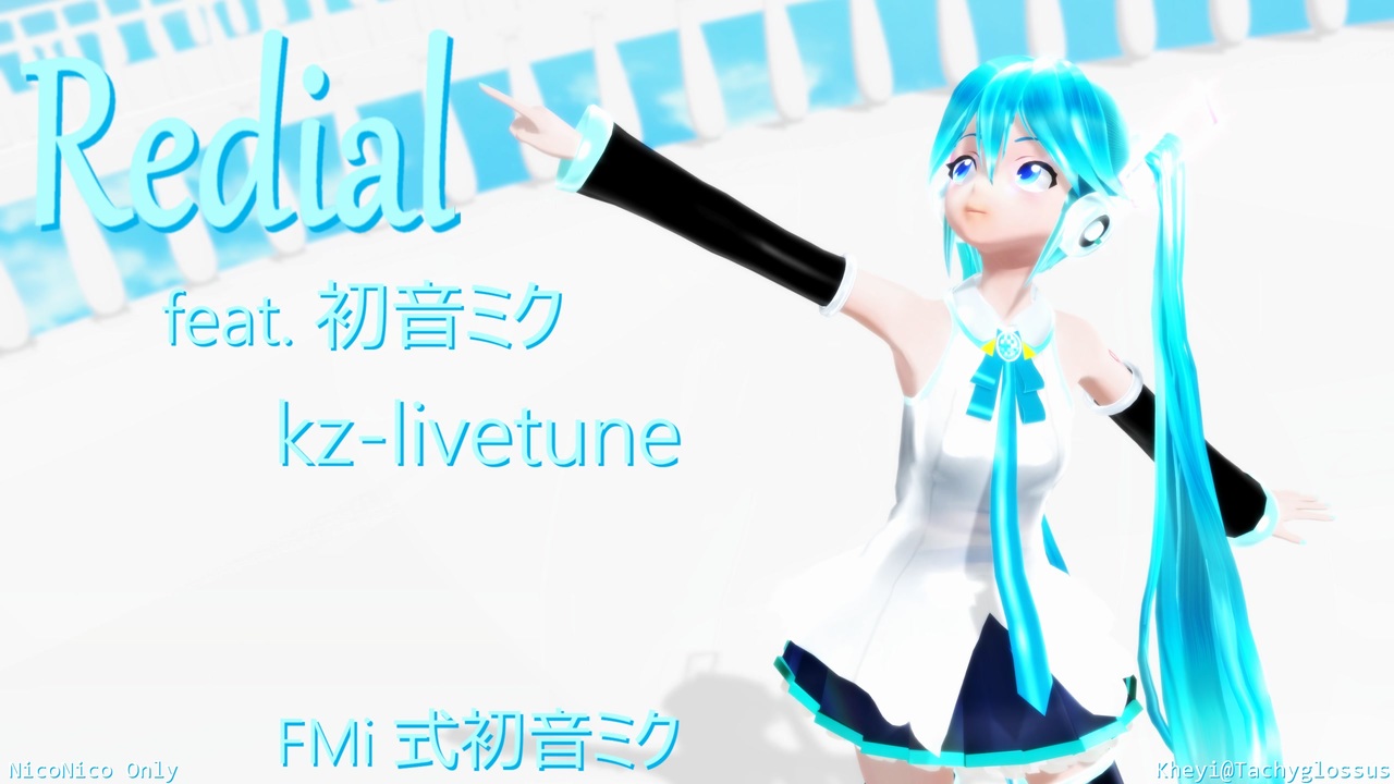 今回は、kz-livetune 様の「Redial」を「FMi 式初音ミク」さんに踊ってもらいました。<br> <br>FMi 式ミクさんですが、そぼろ 様の AutoLuminous4 に同梱されていた AutoLuminousSetter (AutoLuminous用 頂点発光設定プラグイン) を使用して、イロイロ光らせています。← 追加したモーフ数=25 <br><br>(追記:スカイドーム の向きと影の向きが一致していない気がします…)<br><br><br>[ お借りした物 ]<br><br>楽曲:「Redial」 kz-livetune 様 <a href="https://www.youtube.com/watch?v=243vPl8HdVk&t=4s" target="_blank" rel="noopener nofollow">https://www.youtube.com/watch?v=243vPl8HdVk&t=4s</a><br><br> モーション:airiswhite 様 <a href="https://www.nicovideo.jp/watch/sm43469608" class="watch">sm43469608</a><br> 振付/踊り:紫ノ宮かのん 様 <a href="https://www.youtube.com/watch?v=8FzF6XOUVyI" target="_blank" rel="noopener nofollow">https://www.youtube.com/watch?v=8FzF6XOUVyI</a><br> カ メ ラ:airiswhite 様 <a href="https://www.youtube.com/watch?v=oG_ZiVz8cik" target="_blank" rel="noopener nofollow">https://www.youtube.com/watch?v=oG_ZiVz8cik</a><br><br>モ デ ル:「FMi 式初音ミク Ver 1.03」 fumi 様 <a href="https://www.nicovideo.jp/watch/sm39263491" class="watch">sm39263491</a><br><br>ステージ:「stage_SV03 (石手摺の塔)v1.02」 のべ男 様 <a href="https://seiga.nicovideo.jp/seiga/im8605421" target="_blank" rel="noopener">im8605421</a>, <a href="https://seiga.nicovideo.jp/seiga/im9116897" target="_blank" rel="noopener">im9116897</a><br><br>スカイドーム :「青空3」 ばんぞく 様 <a href="https://seiga.nicovideo.jp/seiga/im11371726" target="_blank" rel="noopener">im11371726</a><br><br>PowerShader 角砂糖 様 <a href="https://www.nicovideo.jp/watch/sm32258872" class="watch">sm32258872</a><br><br><br>その他エフェクト、ツール及び各種プラグインは、コンテンツツリー及び動画内のCreditをご確認ください。<br> <br>MMD動画を愛するすべての皆様に感謝を! <br><br><a href="https://www.nicovideo.jp/mylist/77988133" target="_blank" rel="noopener">mylist/77988133</a>:私が投稿した動画 List (33作品目)<br><br><br>追記:(最終:2025/09/13/ 09:26頃)<br>広告をしていただいた皆様、ありがとうございました!<br>御礼として、静画 (<a href="https://seiga.nicovideo.jp/seiga/im11670669" target="_blank" rel="noopener">im11670669</a>) を投稿させていただきました m(_ _")m