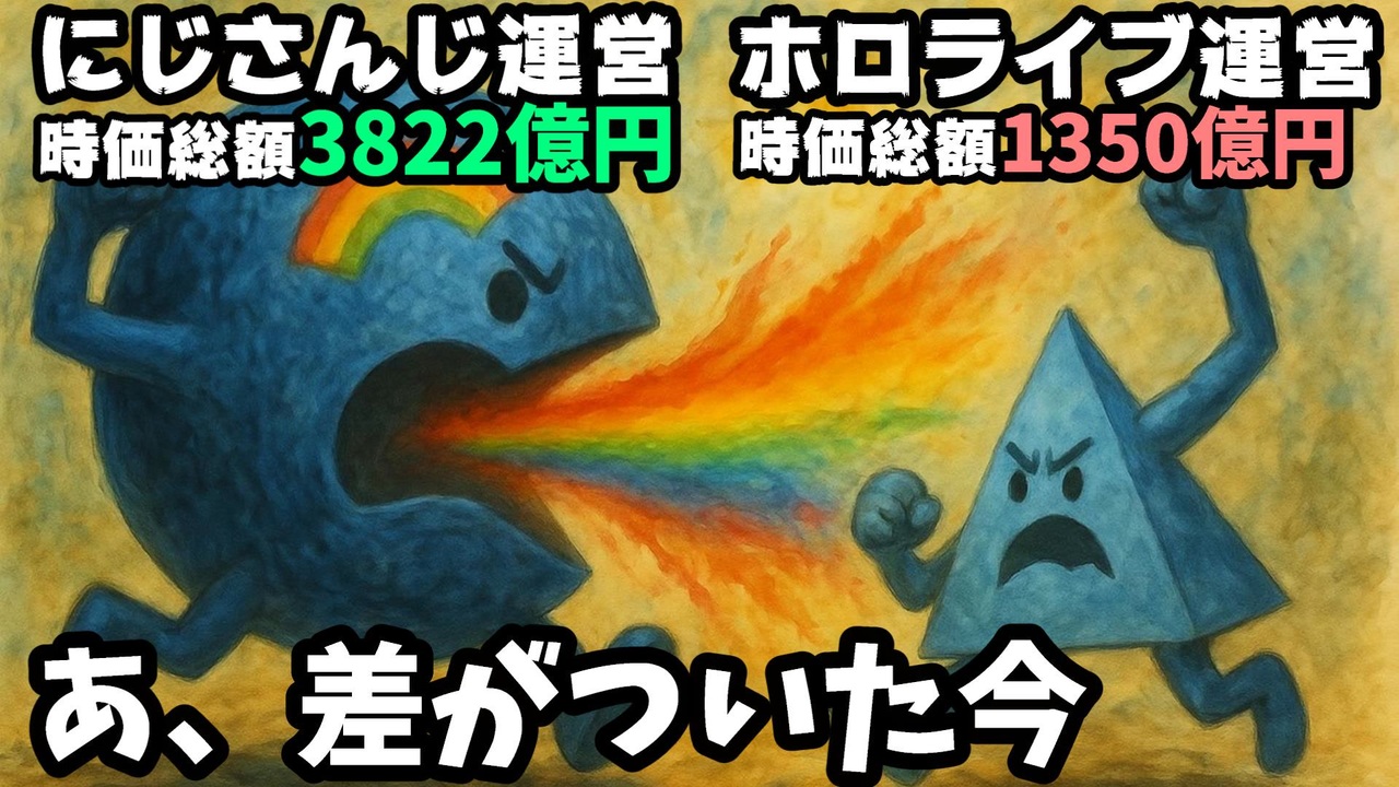 2025年9月12日、にじさんじ運営とホロライブ運営の株価と時価総額に差がついているとして話題になっています。<br><br>引用<br><a href="https://www.anycolor.co.jp/ir/news" target="_blank" rel="noopener nofollow">https://www.anycolor.co.jp/ir/news</a><br><br>Youtube <a href="https://www.youtube.com/@V_Virgin_Mary" target="_blank" rel="noopener nofollow">https://www.youtube.com/@V_Virgin_Mary</a><br>twitter <a href="https://twitter.com/V_Virgin_Mary" target="_blank" rel="noopener nofollow">https://twitter.com/V_Virgin_Mary</a><br><br>使用素材 高品質なフリー動画素材 - Pixabay <a href="https://pixabay.com/ja/videos" target="_blank" rel="noopener nofollow">https://pixabay.com/ja/videos</a> <br><br>#切り抜き #切り抜き動画 #ゆっくり解説 #VOICEROID #VOICEROID解説 #vtuber #vtubers #バーチャル #ブイチューバー